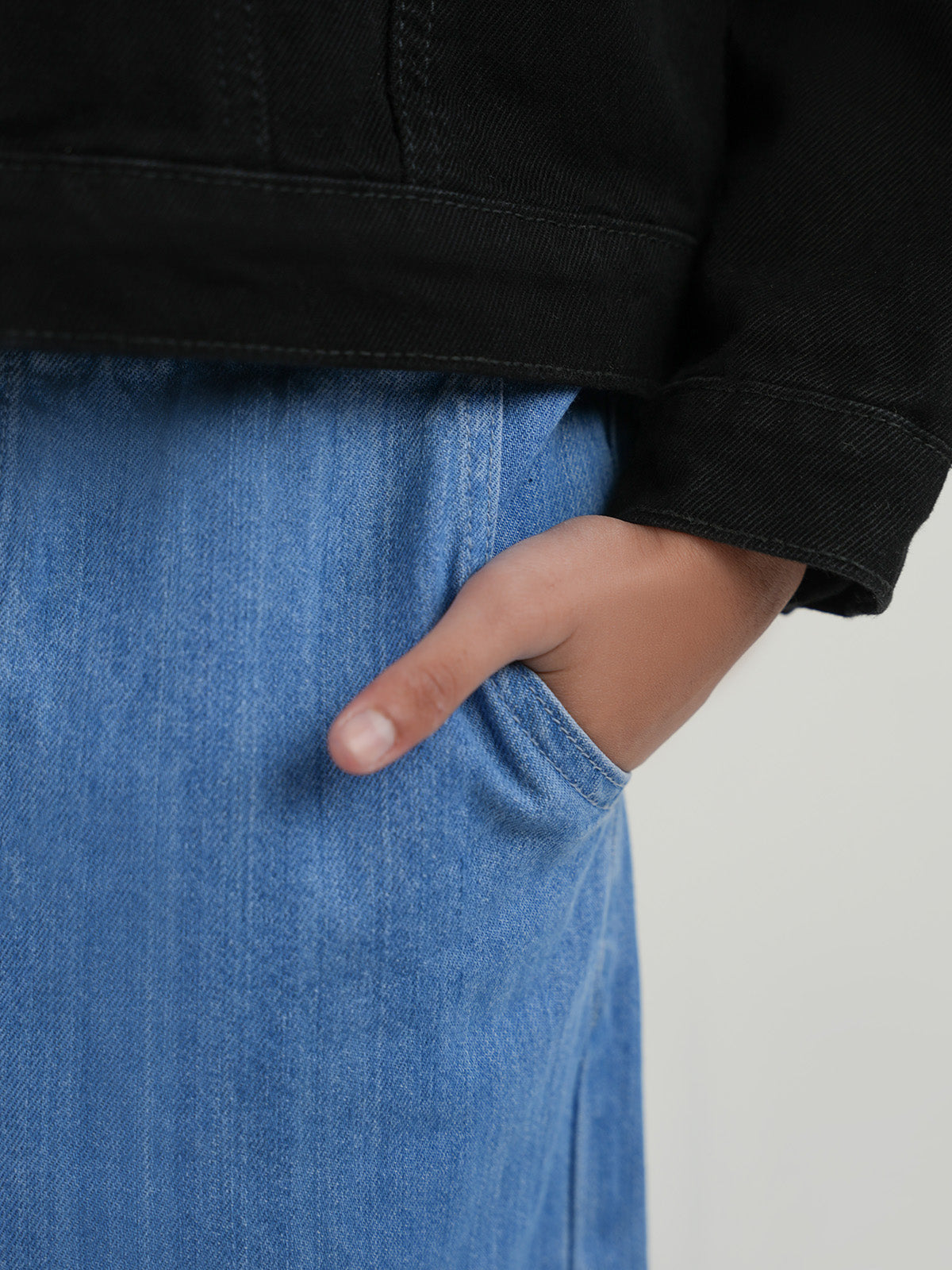 These girls' denim palazzo pants are soft, comfy, and easy to wear. Made from 100% cotton, they feel gentle on the skin and are perfect for all-day use. The palazzo fit gives a loose and stylish look, making them great for play, or going out.