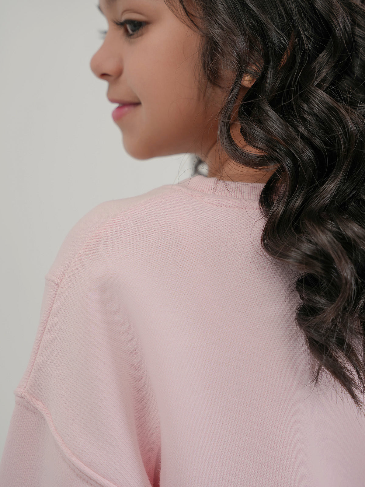 Keep her comfy and stylish with this Girls Kids Fleece Sweatshirt. Featuring a trendy cut & sew design and a relaxed drop shoulder style, this sweatshirt offers both comfort and fashion. Perfect for everyday wear or playtime, it's a cozy must-have for cooler days.
