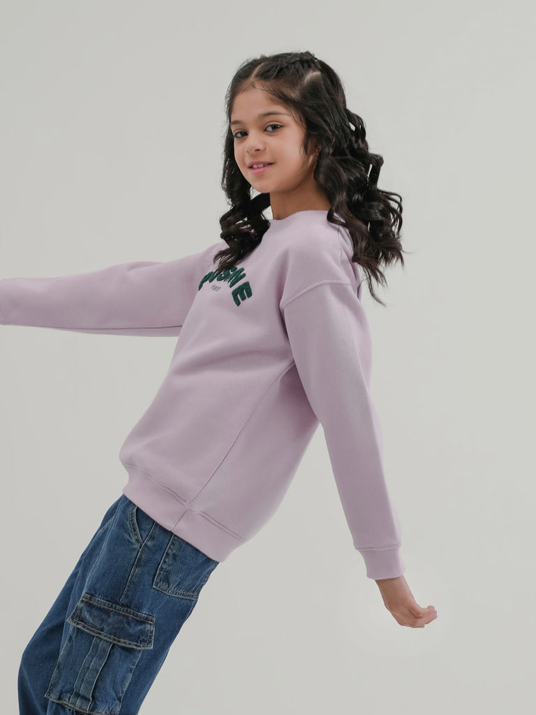 Add a pop of fun to her wardrobe with this Girls Kids Fleece Sweatshirt, featuring a bold and playful graphic design. Crafted from soft fleece fabric, it offers cozy warmth and lasting comfort. A cute and comfy choice for everyday wear!
