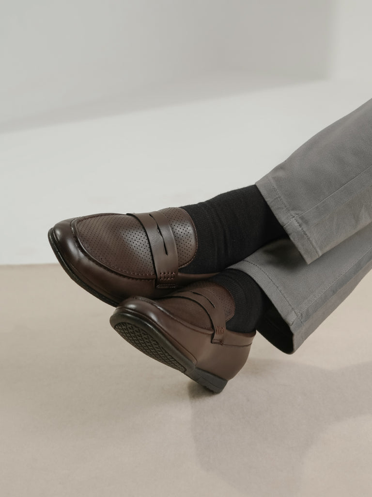 Step out in style with these men’s loafers designed in a different and modern silhouette. Featuring a sleek, minimal profile and a refined finish, these loafers combine comfort with a bold, fashionable edge.Slip them on for effortless elegance and all-day ease.