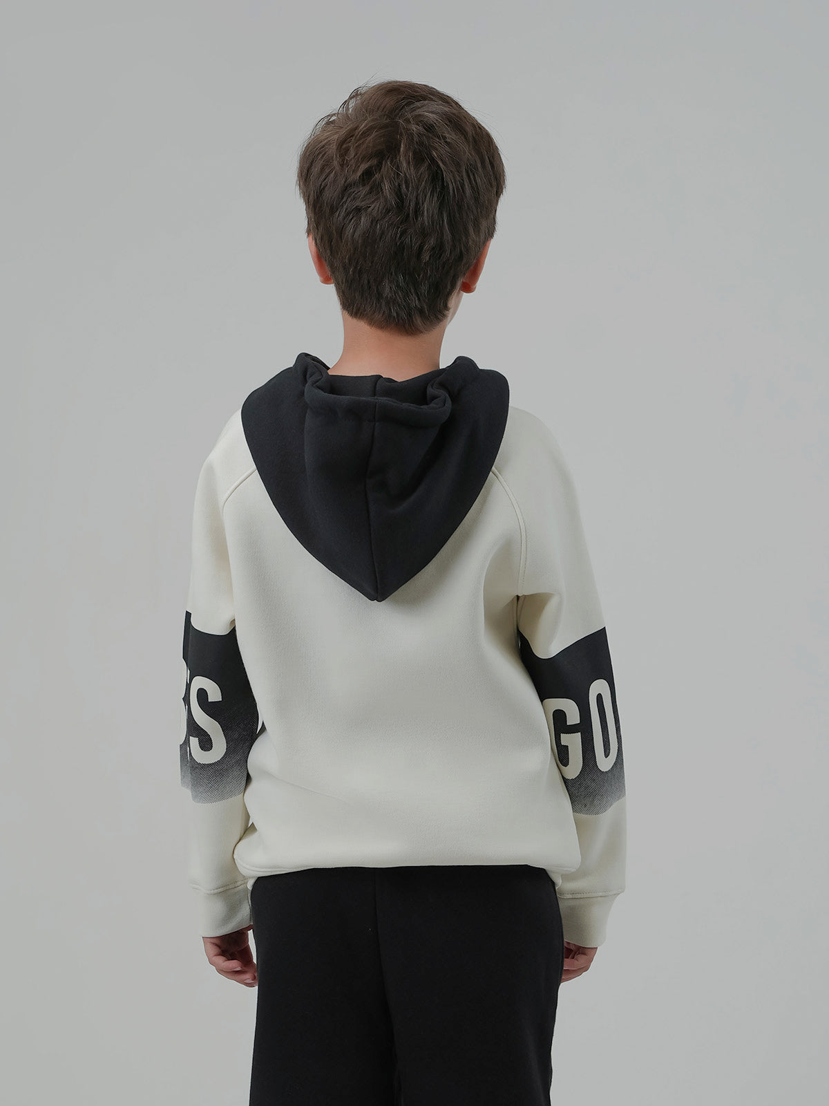 This boys' fleece hoodie is designed with a cool cut & sew pattern and comfy raglan sleeves for a sporty look and easy movement. Cozy, stylish, and made for active kids!