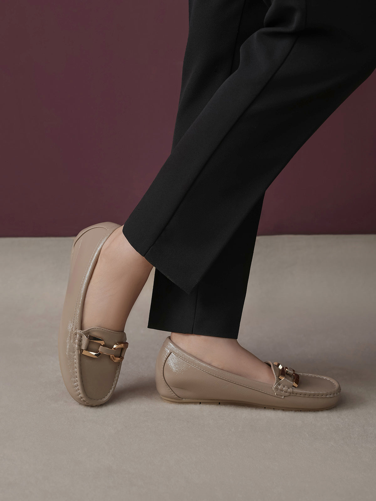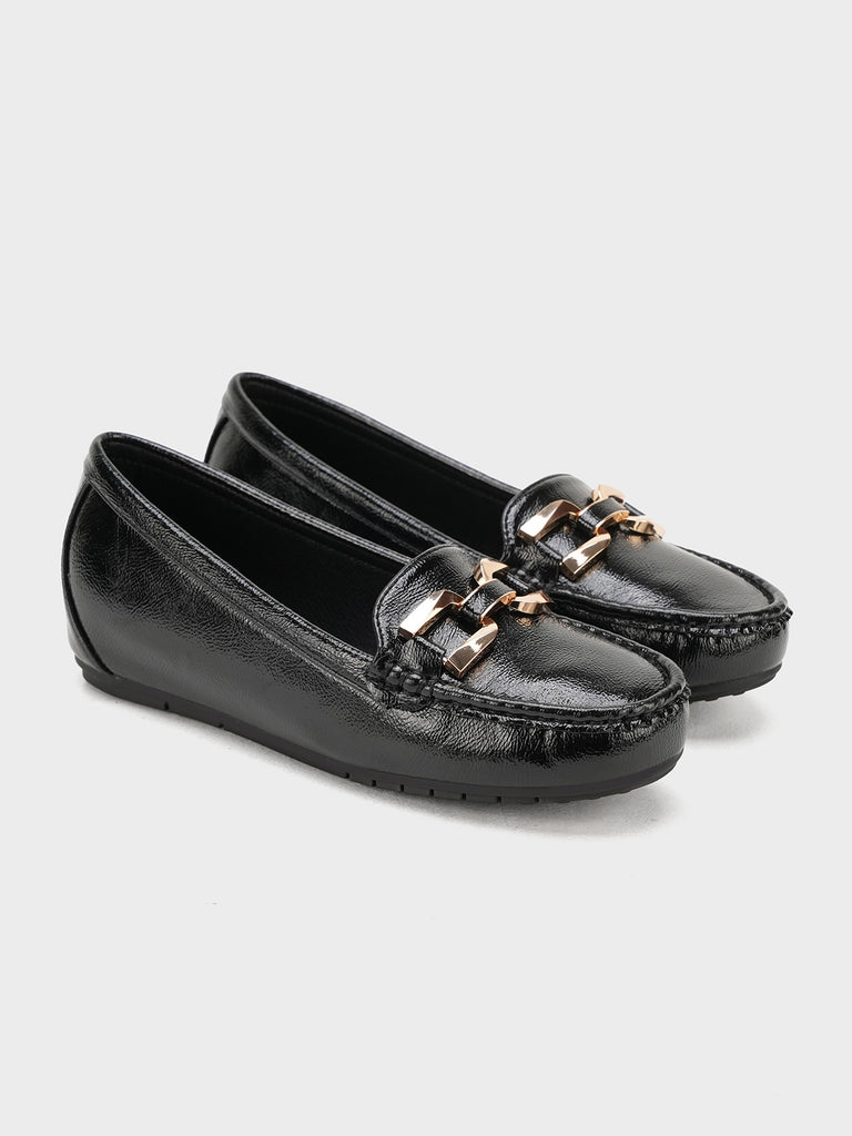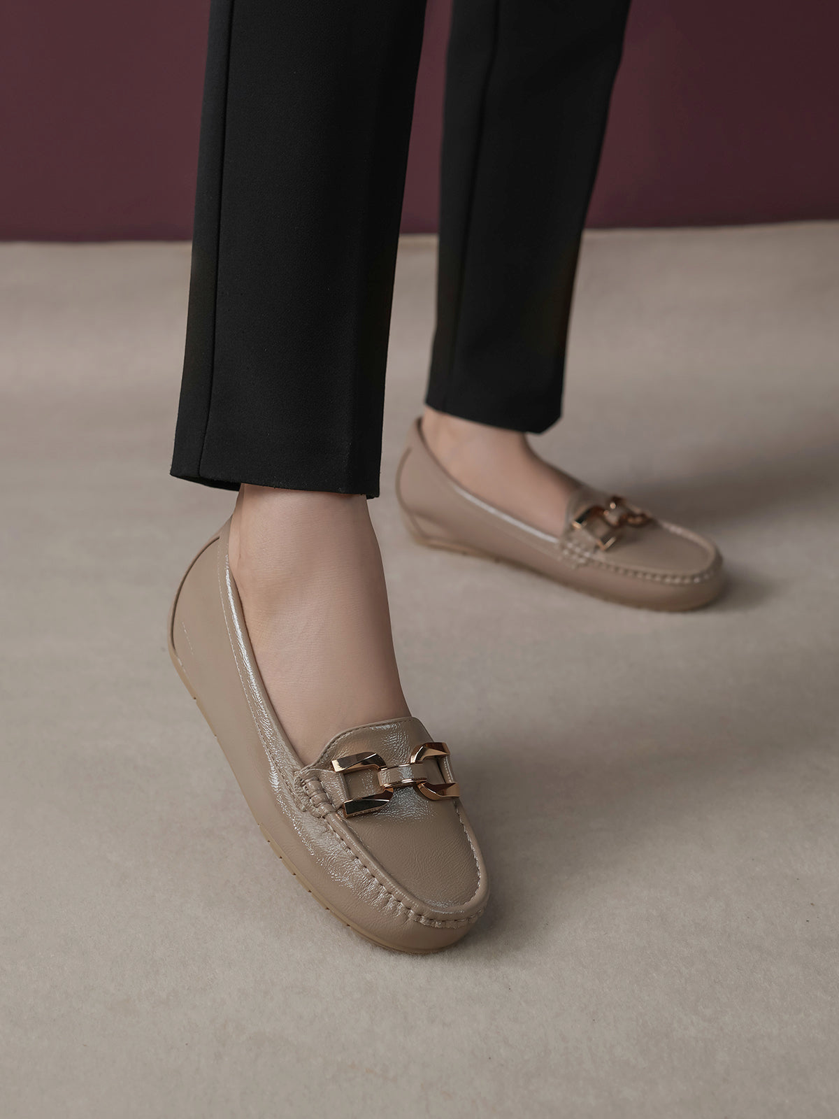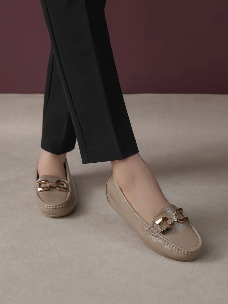These moccasins feature a medium heel for just the right lift and a classy buckle detail on top. Designed for everyday comfort with a modern touch, they are perfect for work, casual outings, or stylish daily wear. Easy to slip on and always in style.