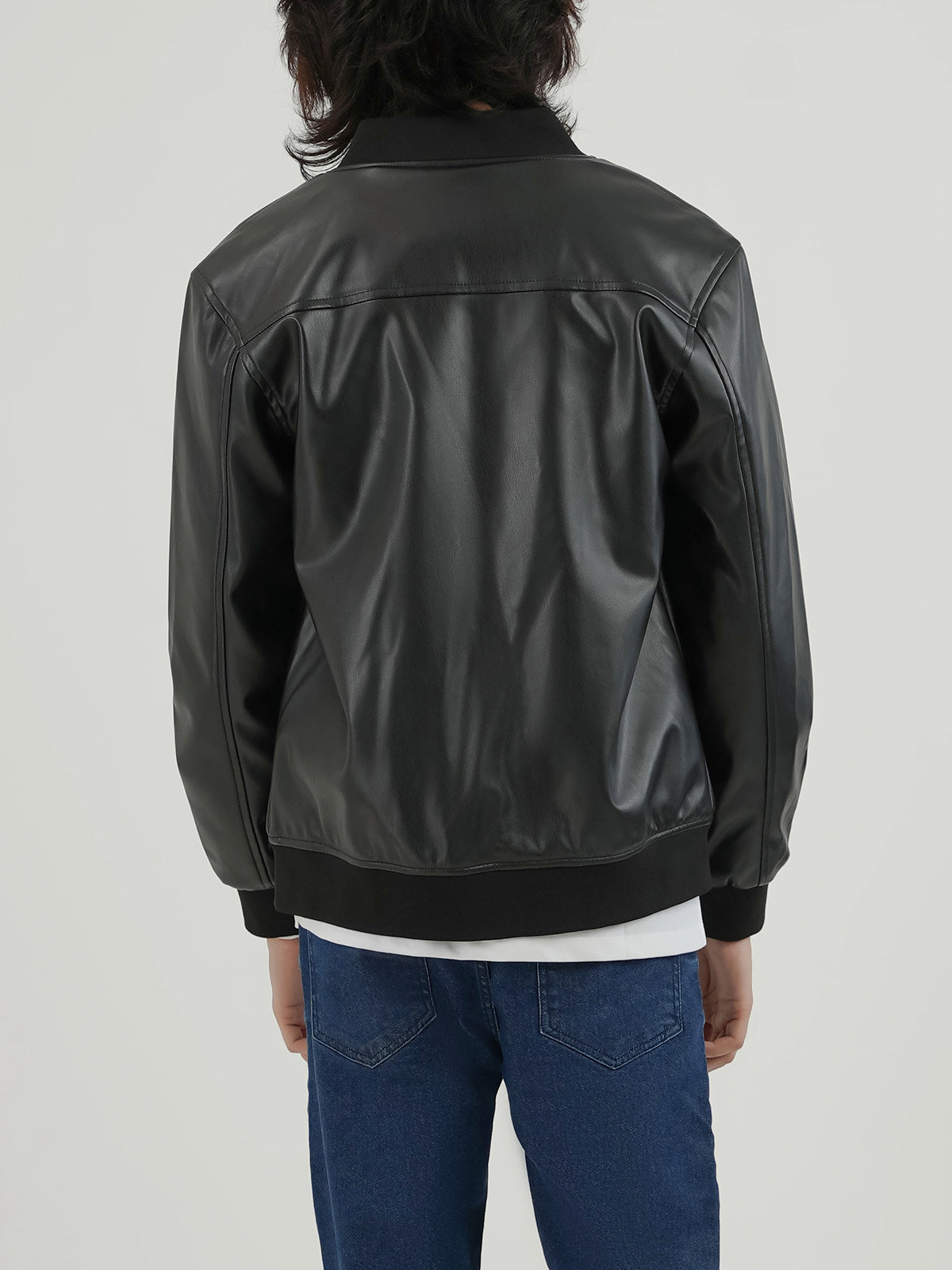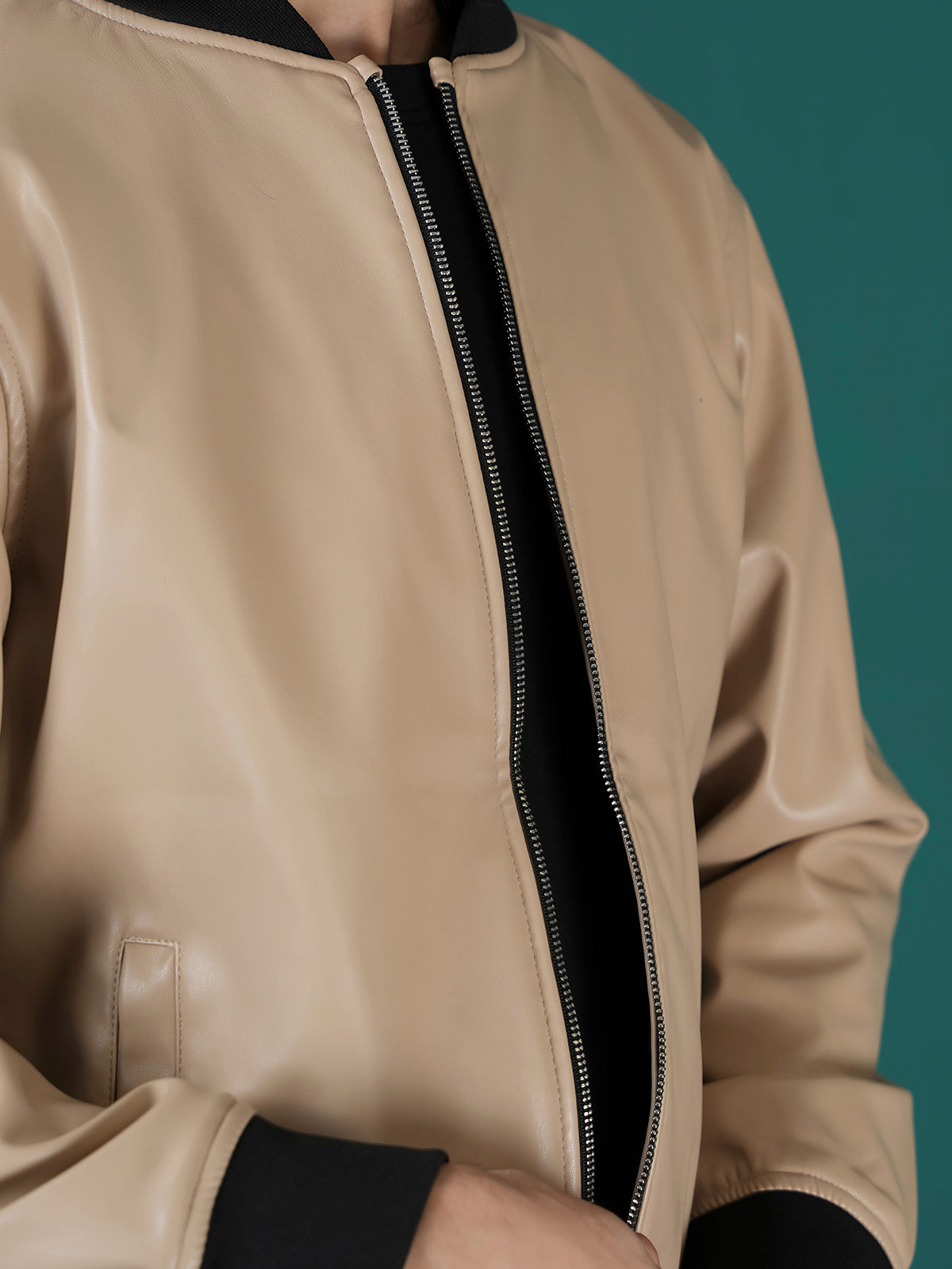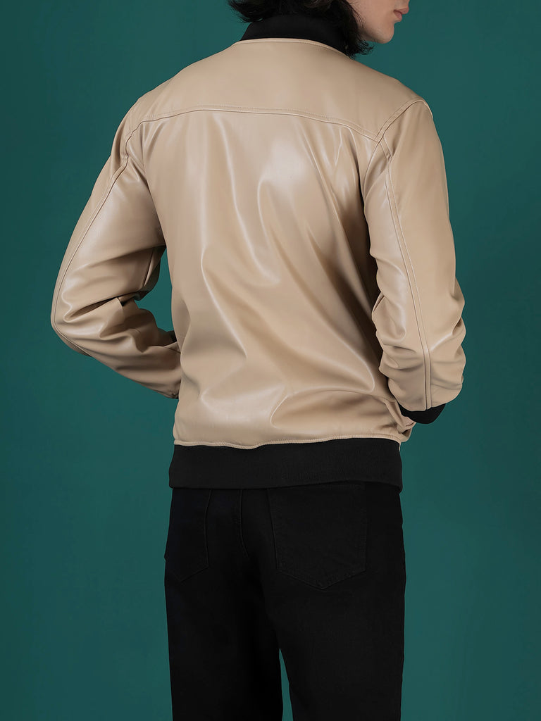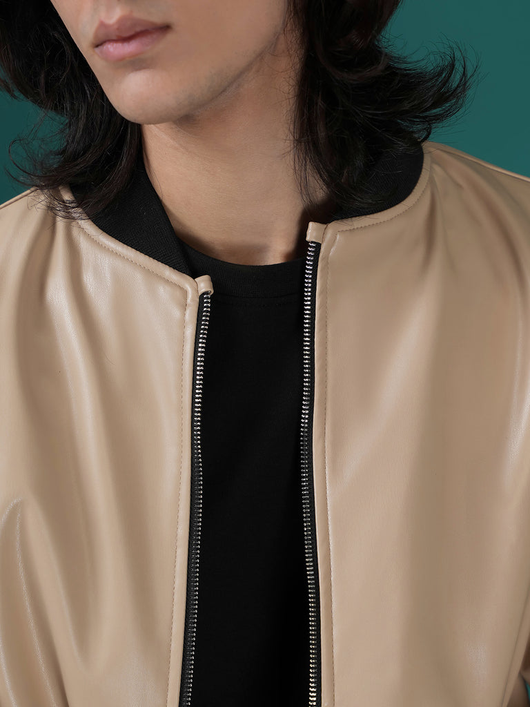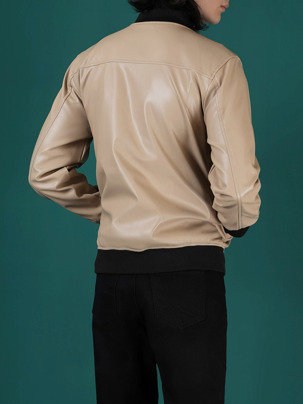 Elevate your casual style with this PU bomber jacket, crafted for a modern yet timeless look. The regular fit ensures comfort, while the sleek faux leather finish adds a bold, fashionable touch to any outfit.