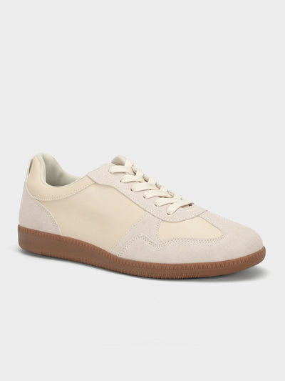 Keep it clean and understated with these minimalist PU lace-up trainers. Crafted from smooth PU material, these trainers offer a sleek, polished appearance that's easy to pair with any outfit. The low-profile design, combined with a lightweight sole and cushioned interior, provides a comfortable fit for all-day wear, making them the perfect choice for both casual and semi-formal occasions.