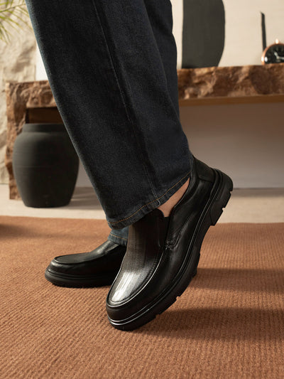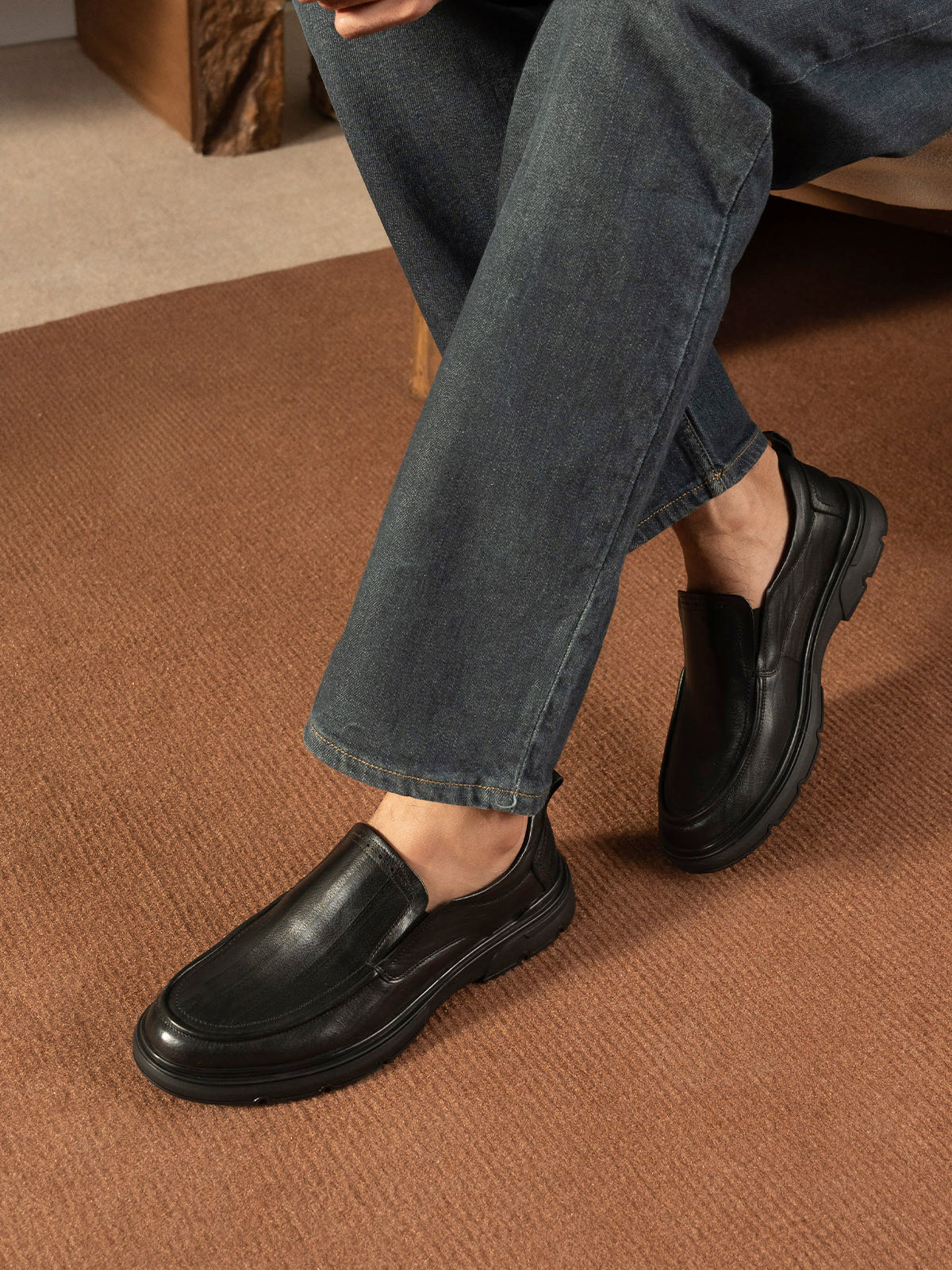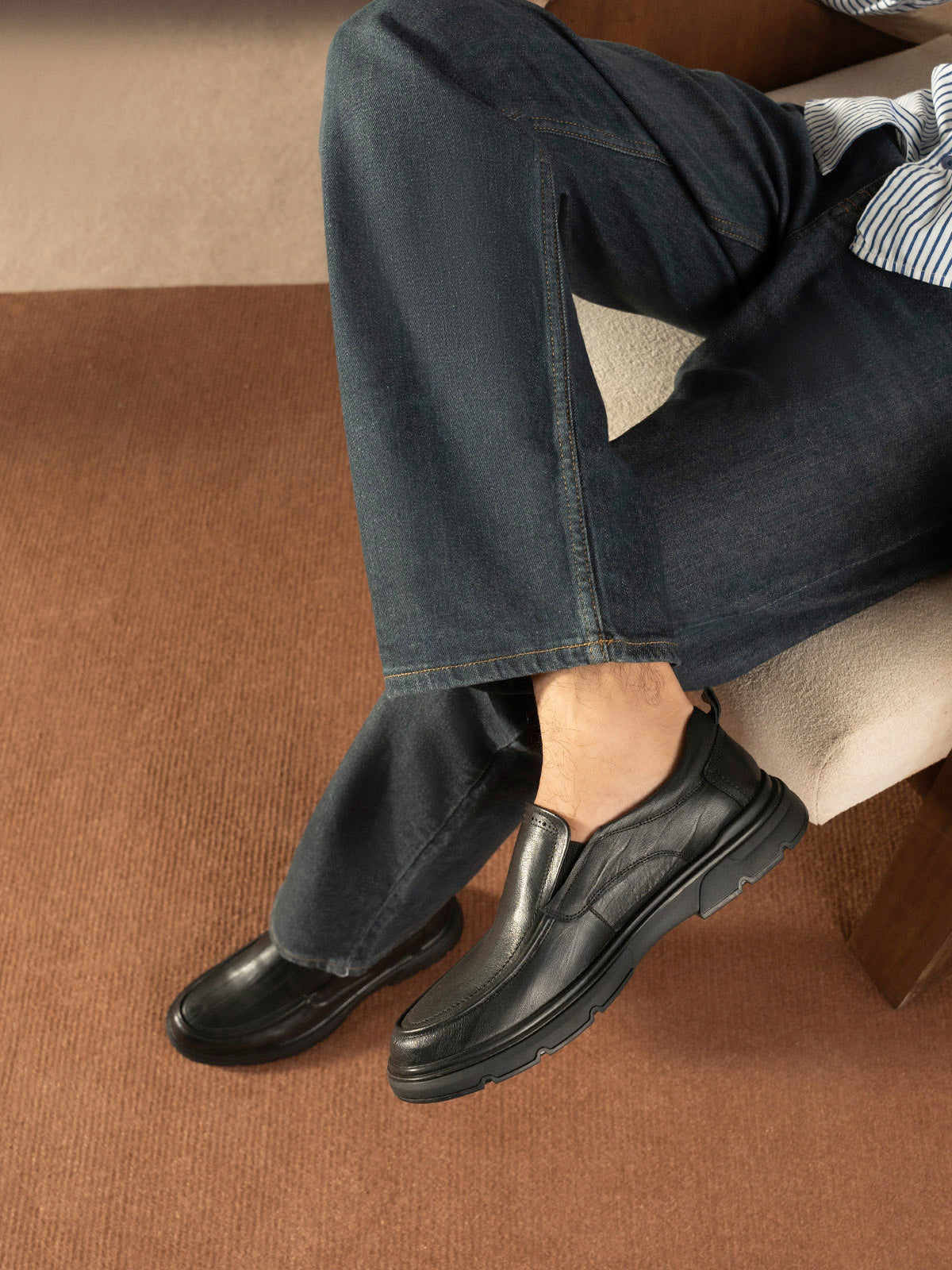 These men’s loafer leather slip-on shoes are easy to wear and perfect for any formal occasion. Made with soft, high-quality leather, they have a clean and classic look. The slip-on design makes them quick to put on, and the cushioned insole keeps your feet comfortable all day.