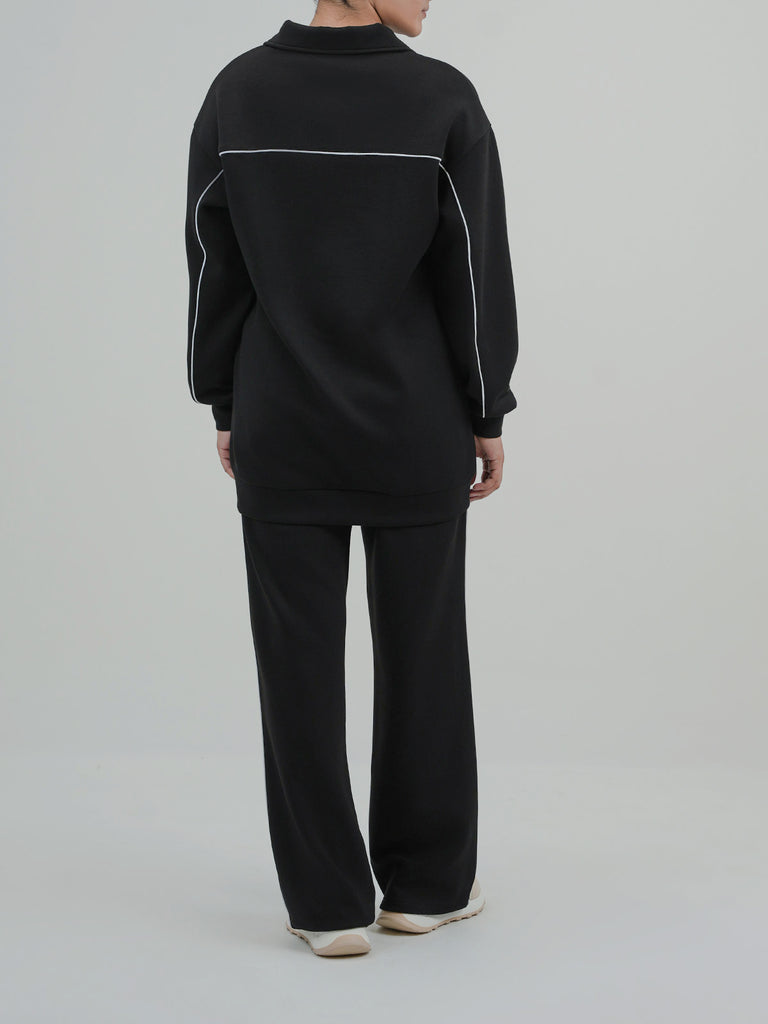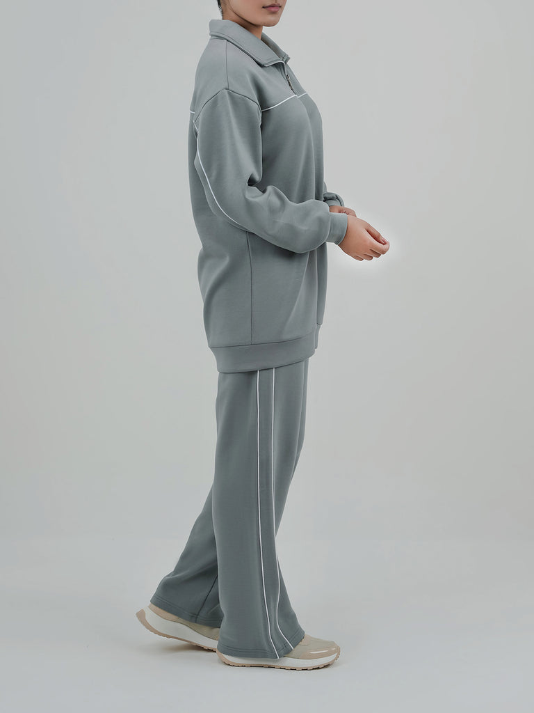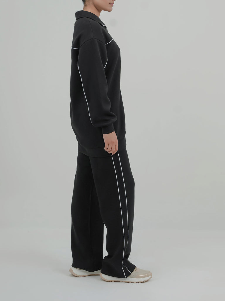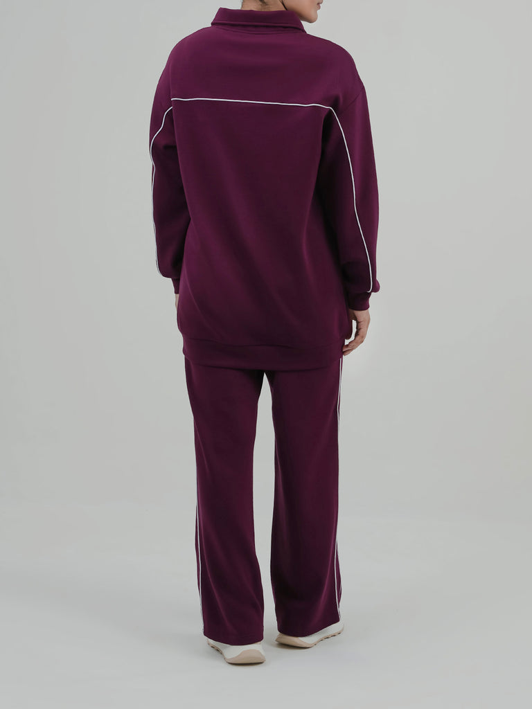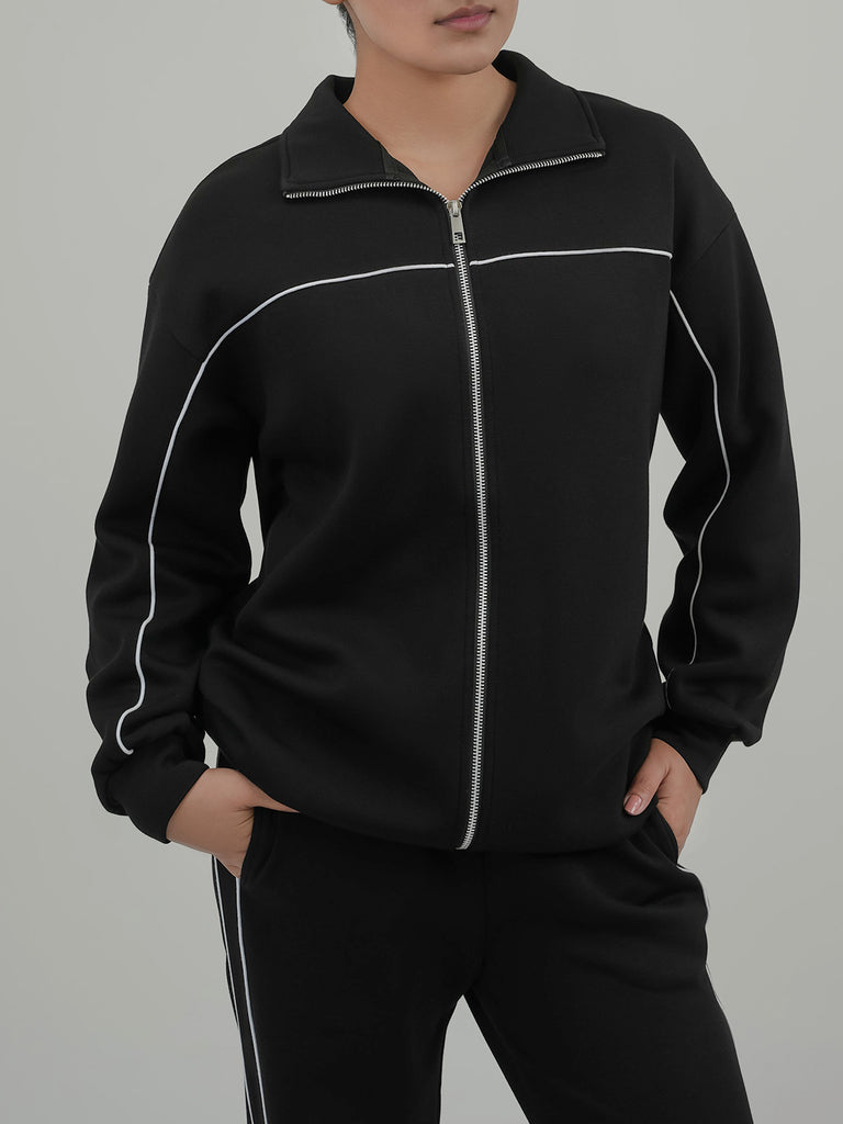 Designed in a regular fit, this set includes a zip-up top with a high collar and matching straight-leg pants. Made from soft fleece fabric, it's perfect for casual days, lounging, or running errands.