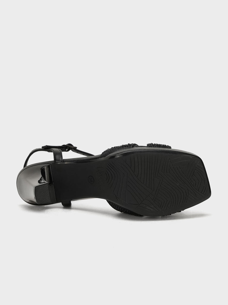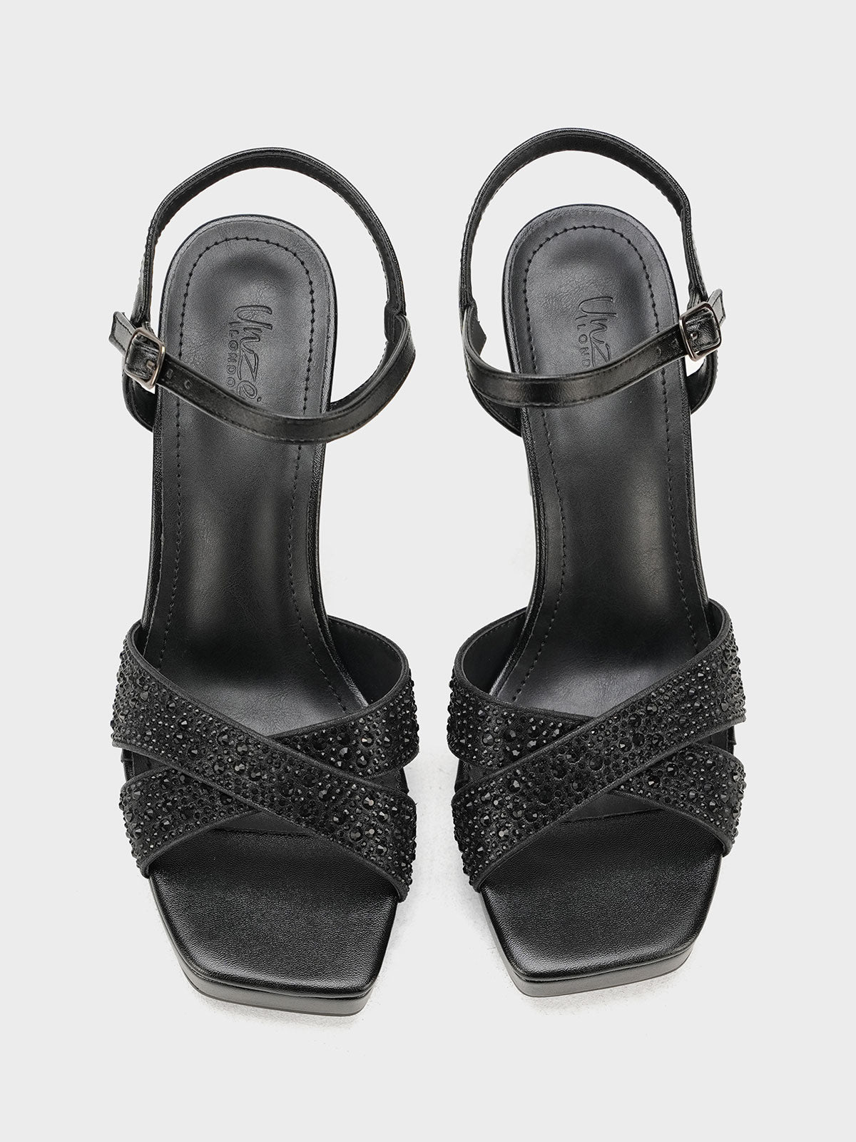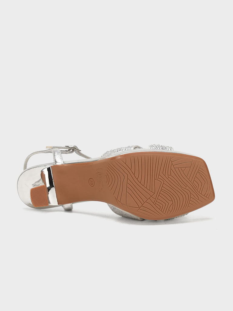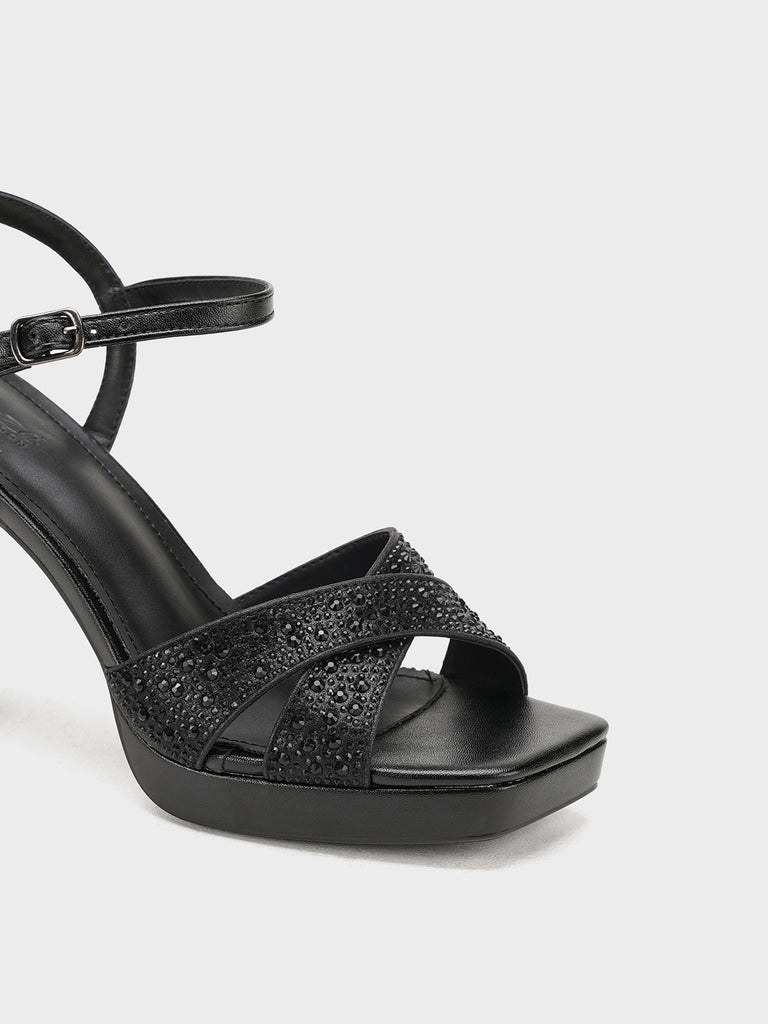 Add a touch of sparkle to your step with these glamorous block heel sandals. Designed with shimmering cross straps and a secure ankle buckle, these heels offer a chic blend of style and comfort. The block heel ensures all-day ease without compromising on fashion.