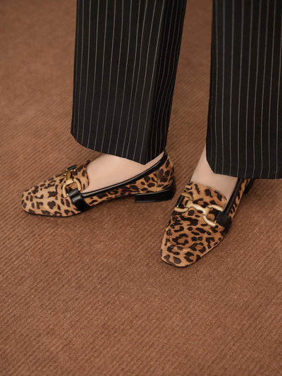 Step into effortless style with these leopard print-style flat slip-on pumps, featuring a sleek metal accent on the upper. The clean design and subtle decoration create a refined, modern look that’s both comfortable and stylish. These versatile flats are perfect for adding a touch of sophistication to any casual or business-casual outfit.
