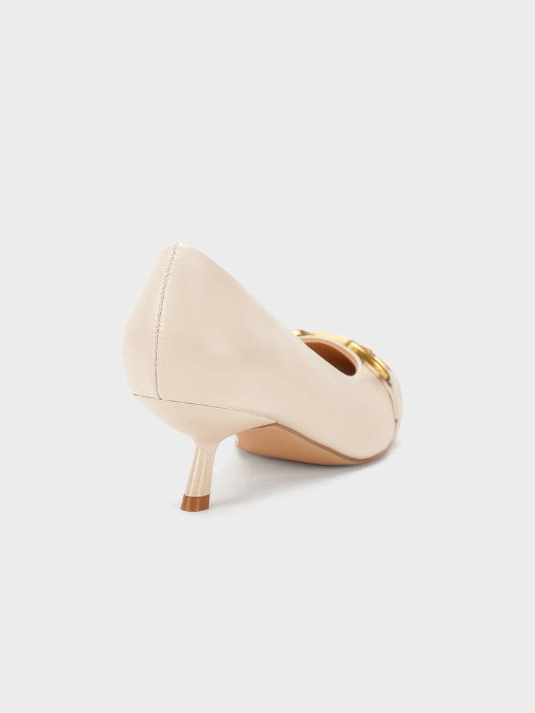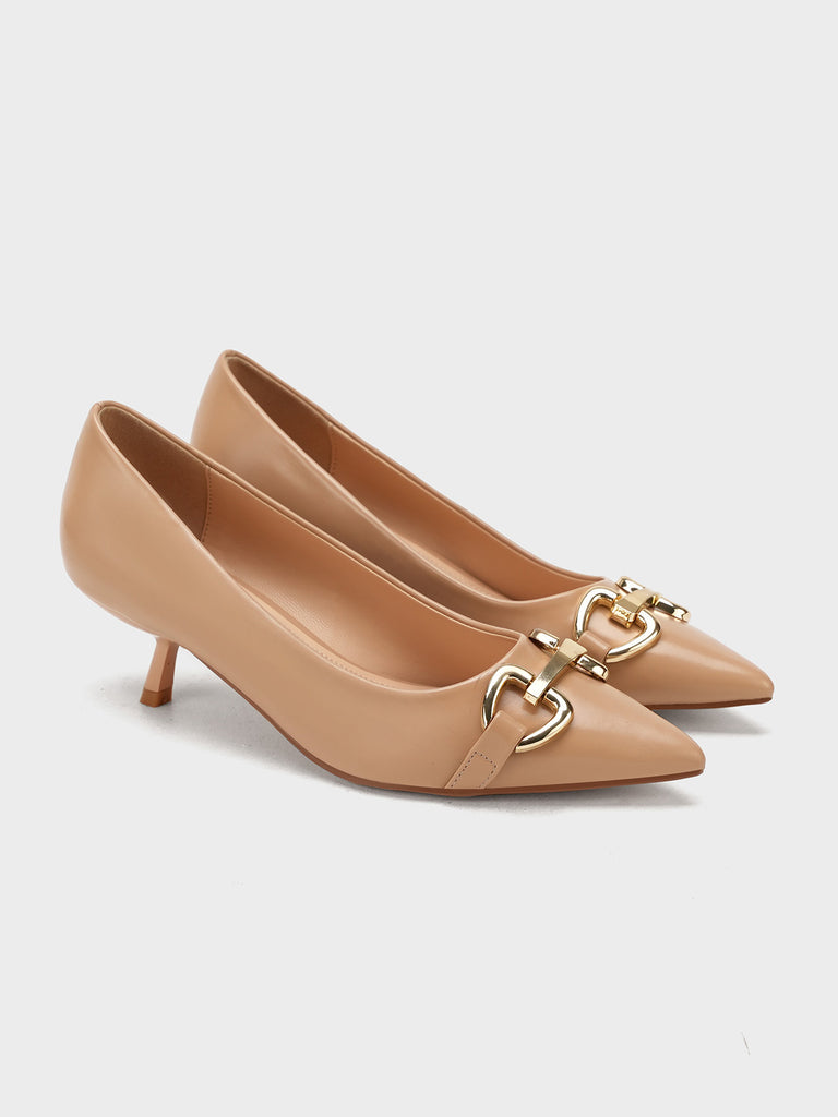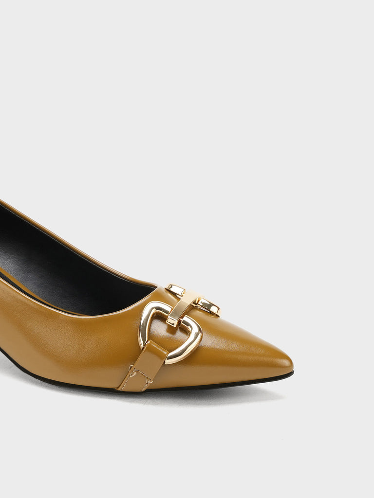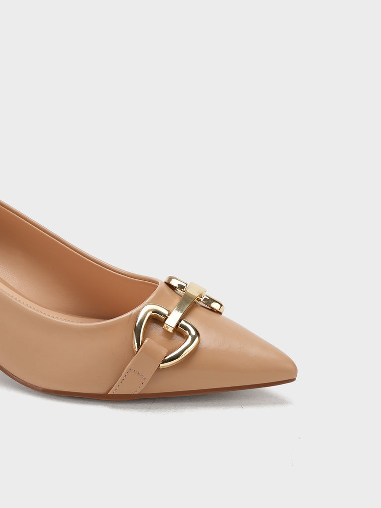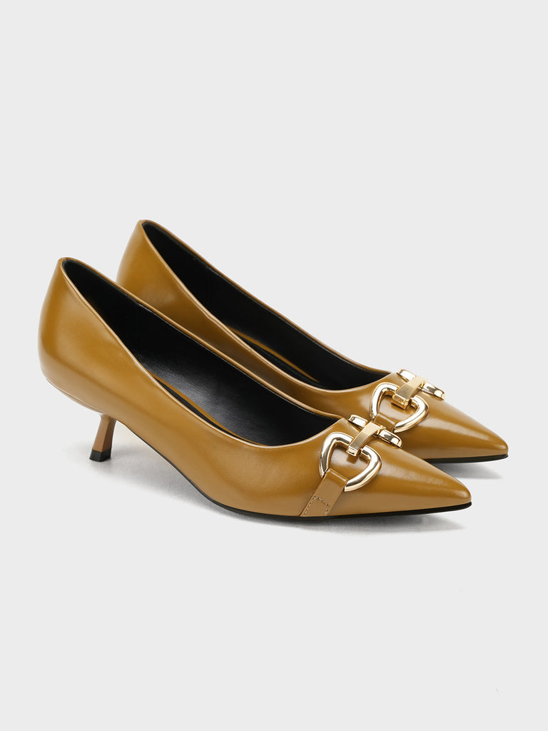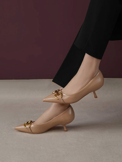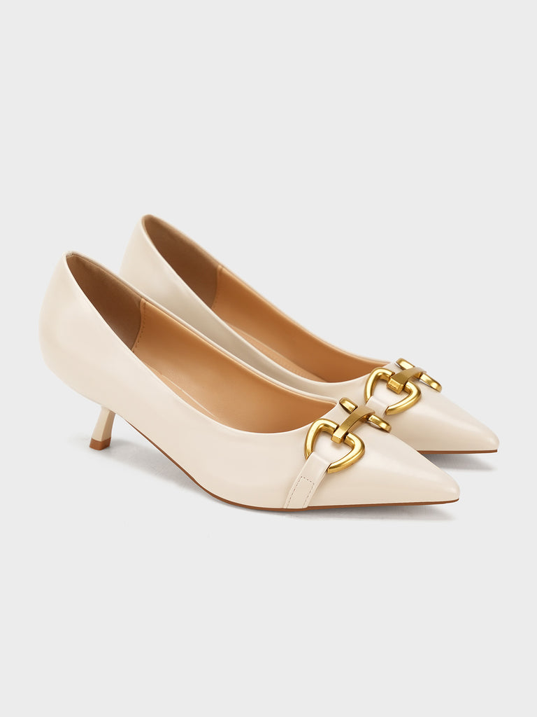 Elevate your style with these elegant pointed-toe court shoes, designed with a glossy finish and bold gold chain detail for a touch of luxury. A timeless design that blends sophistication with modern flair.