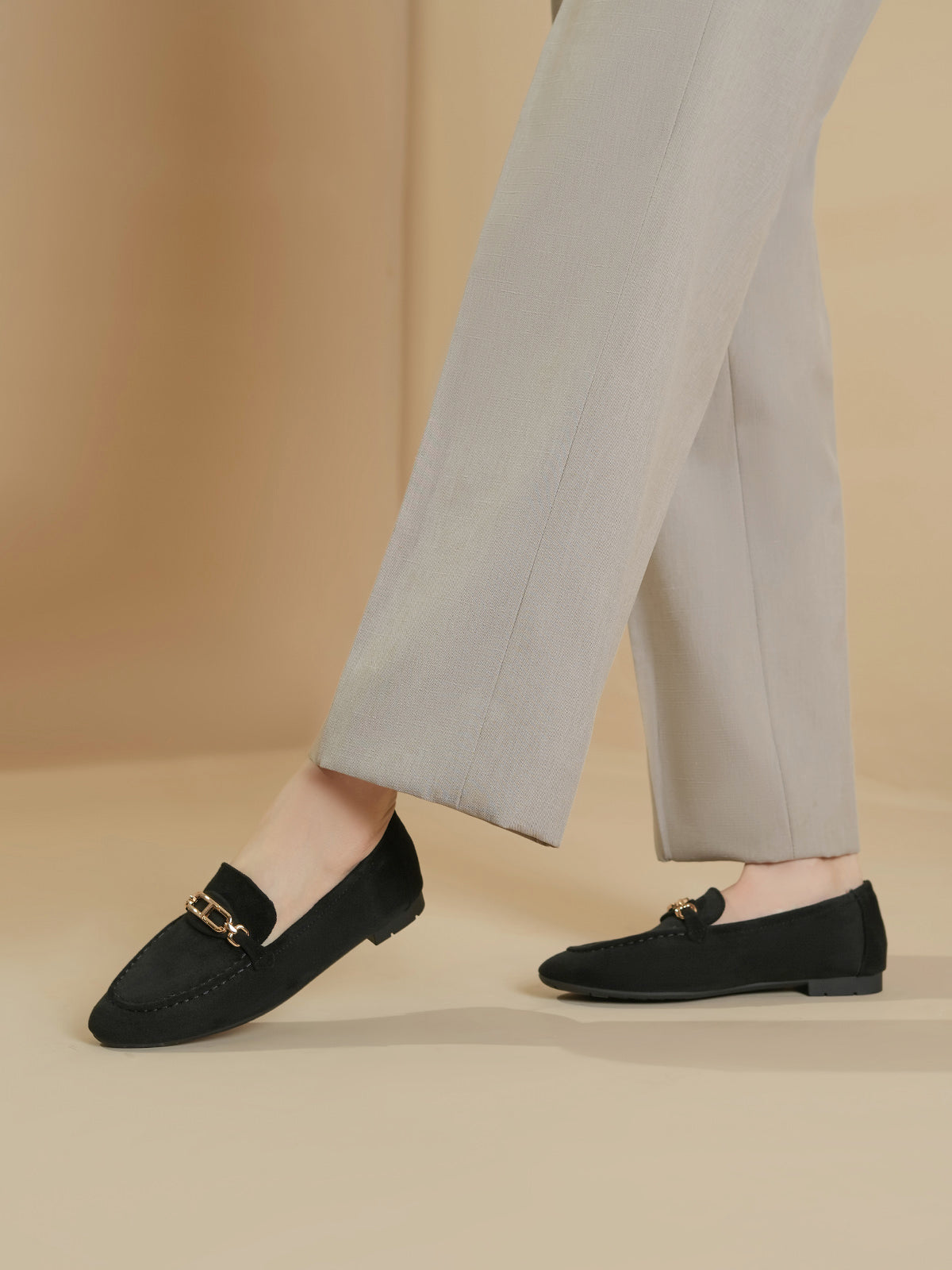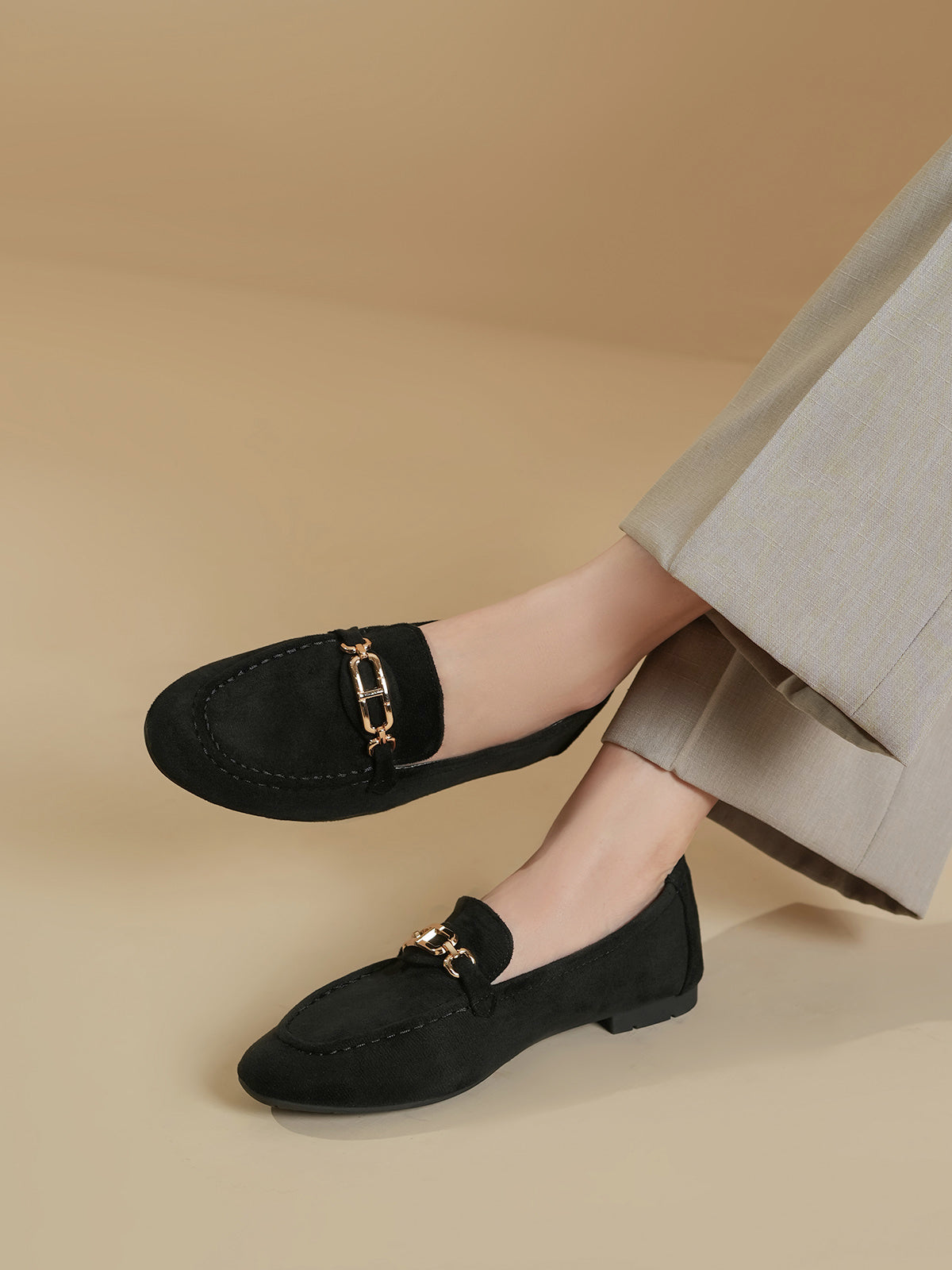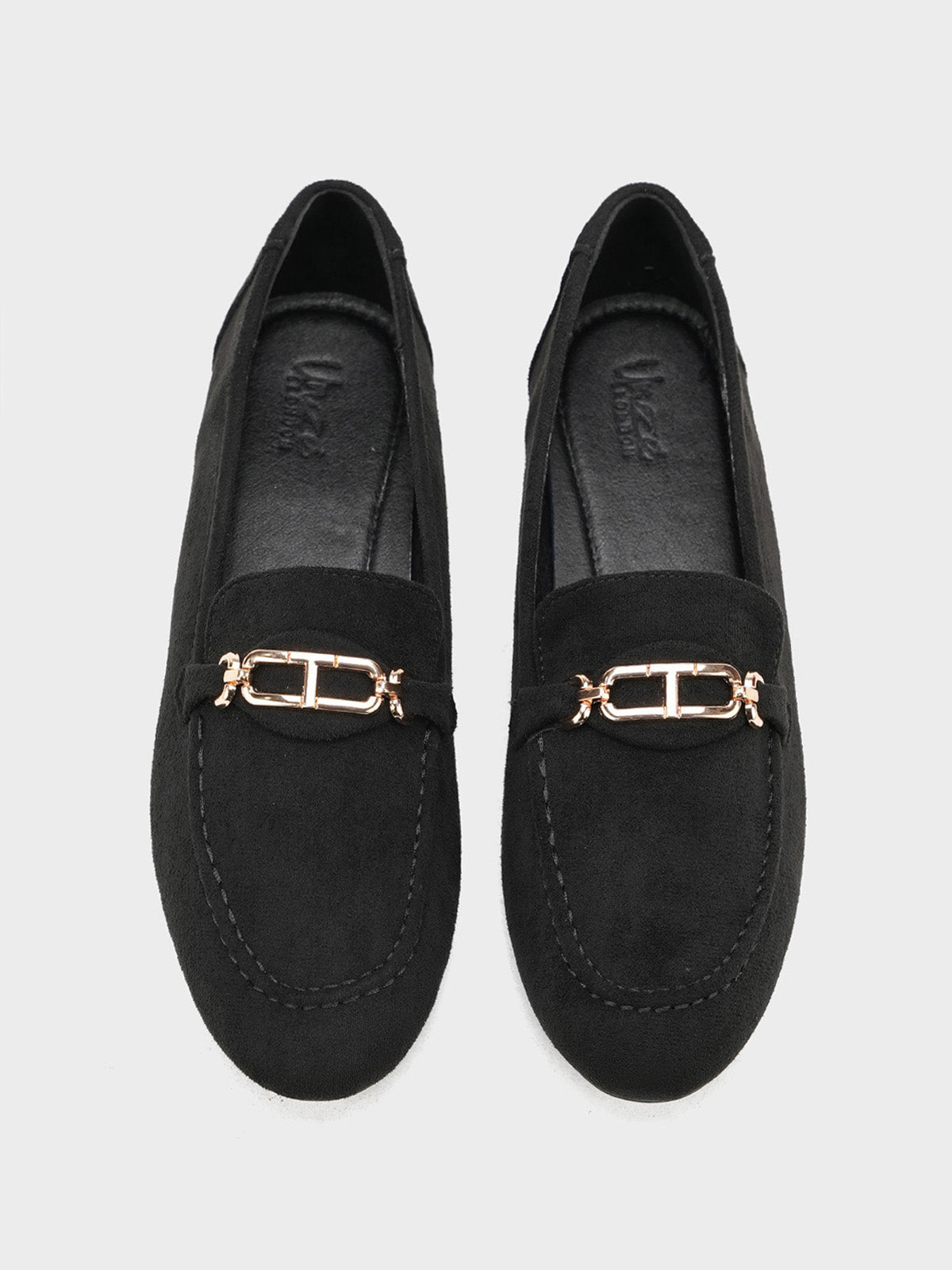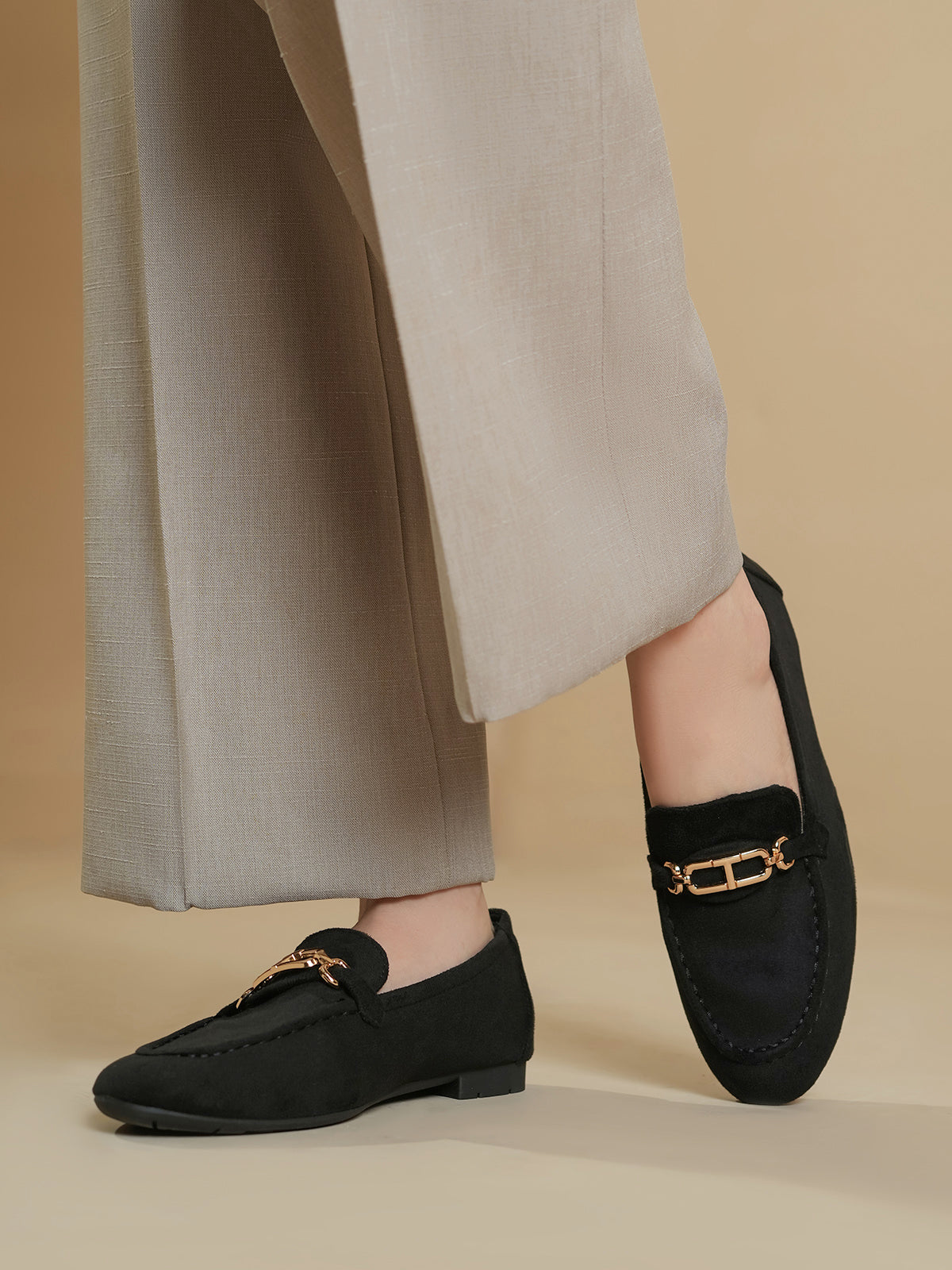 These fabric ballerinas offer soft comfort with a stylish touch. Designed with a sleek buckle on top and an easy slip-on style, they’re perfect for daily wear. Lightweight, breathable, and great for both casual and smart looks.