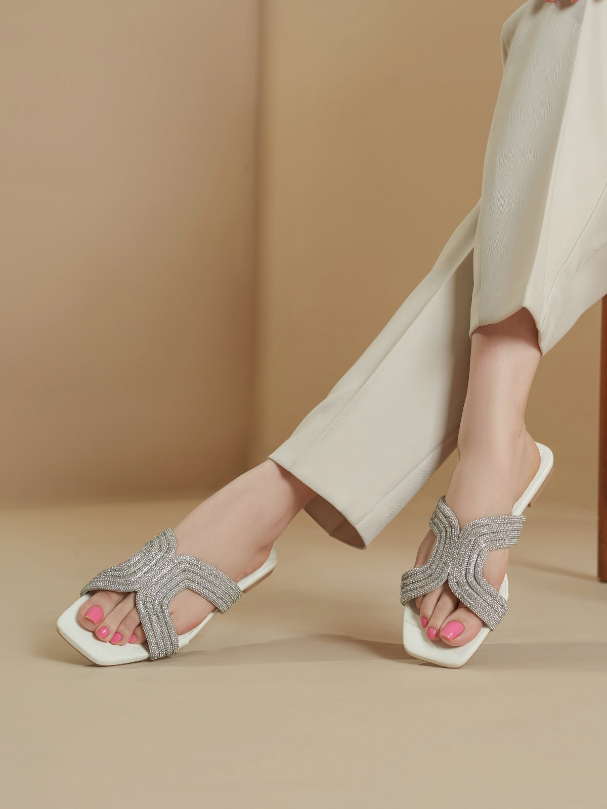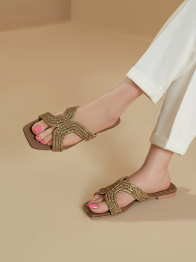 Enhance your look with these women’s fancy stylish slippers, designed to add glamour and comfort to your every step. Featuring a trendy crisscross strap design embellished with shimmering beads, these slippers bring a perfect mix of elegance and modern style.