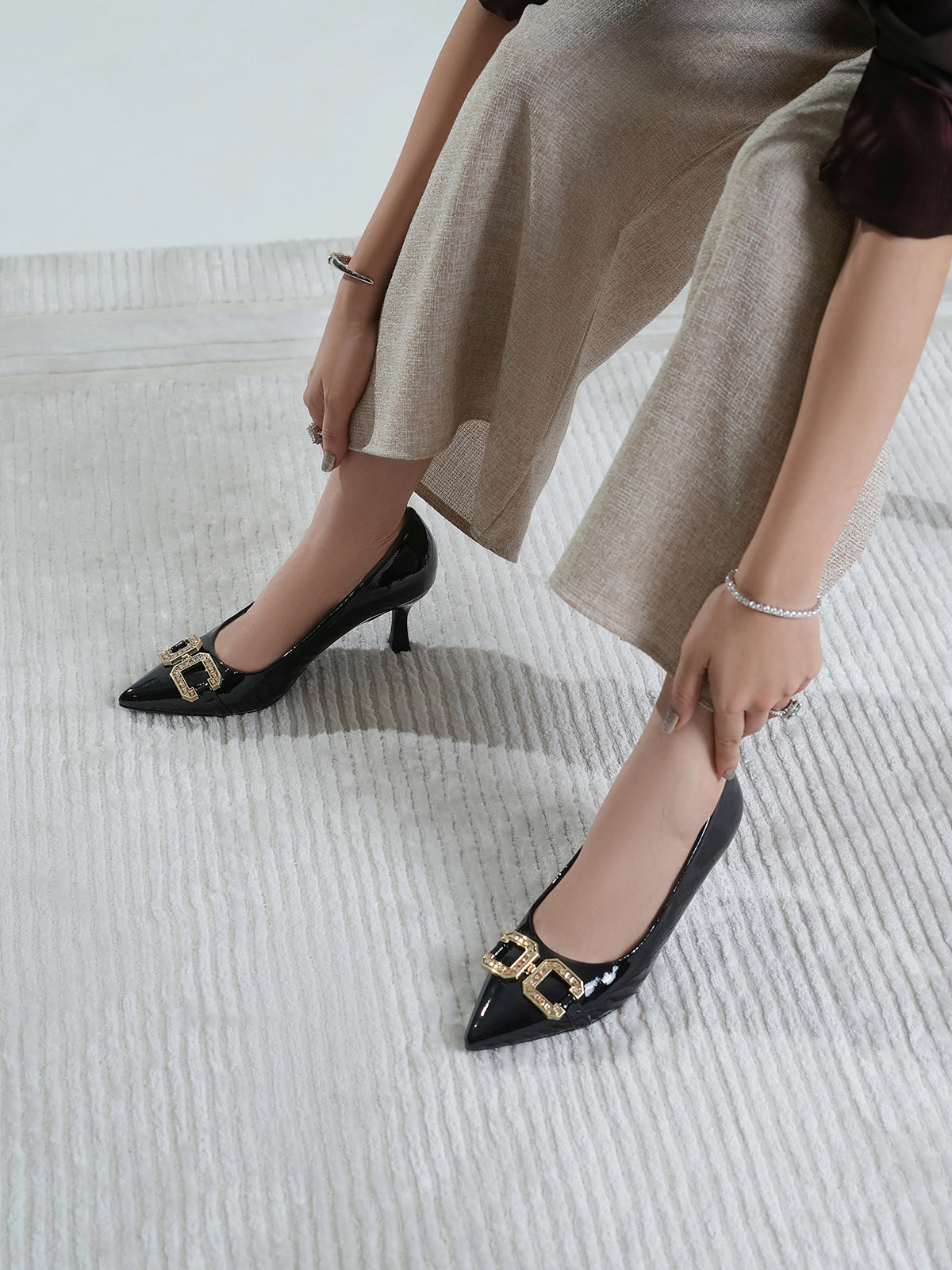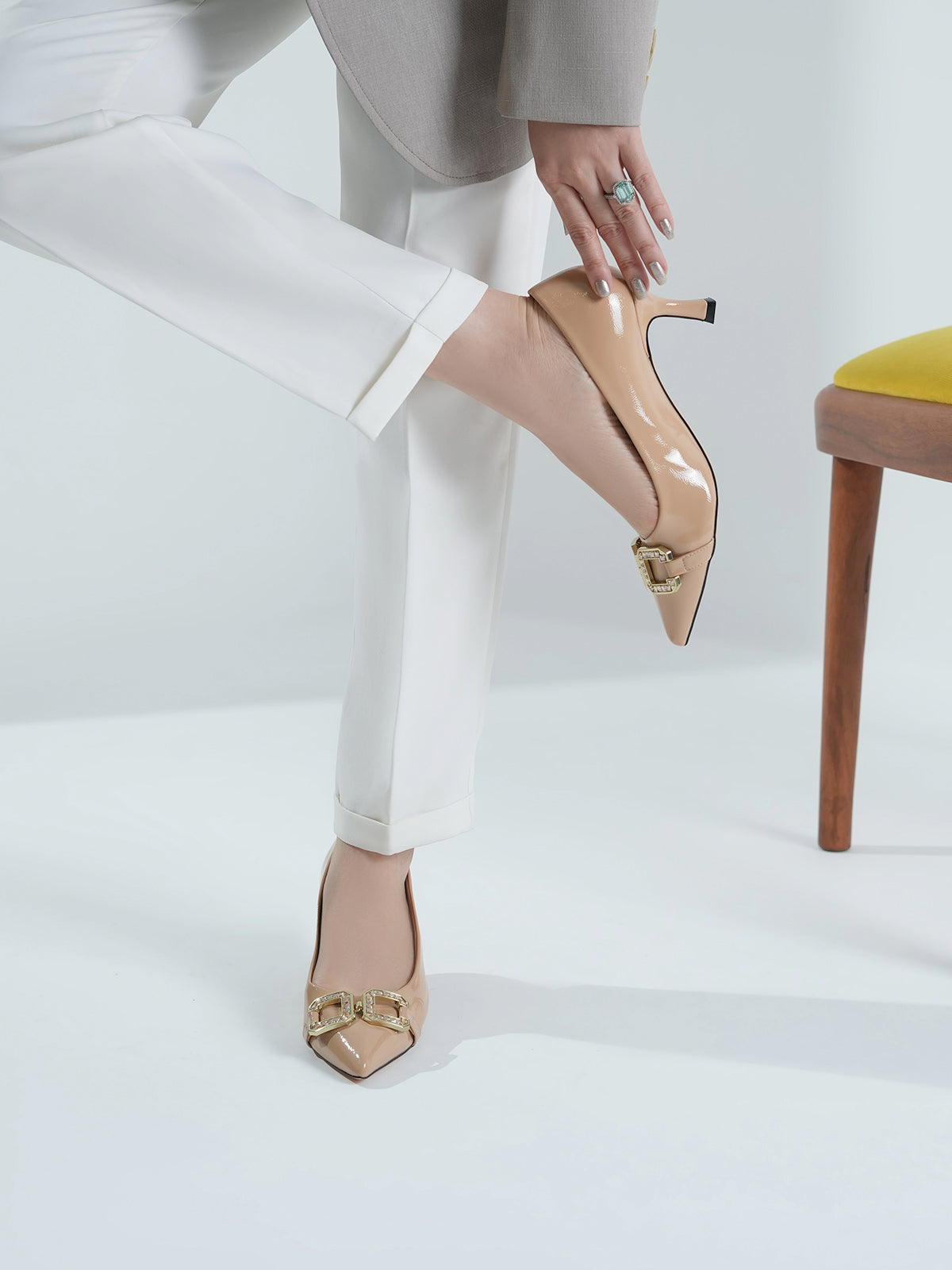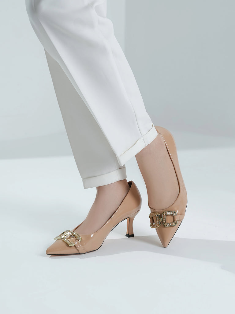 Elevate your style with this classy court shoe set featuring a sleek pointed toe and elegant kitten heel.Perfect for formal events or office wear, these shoes blend luxury and comfort effortlessly.