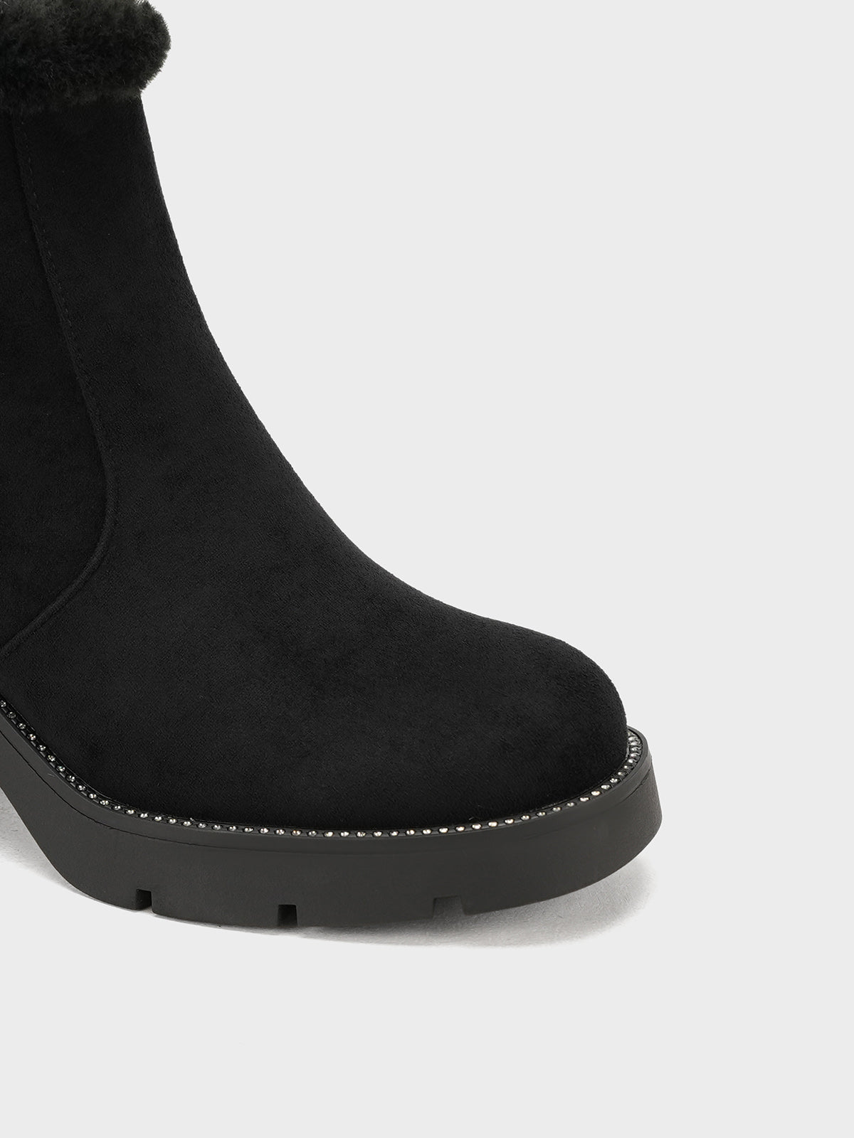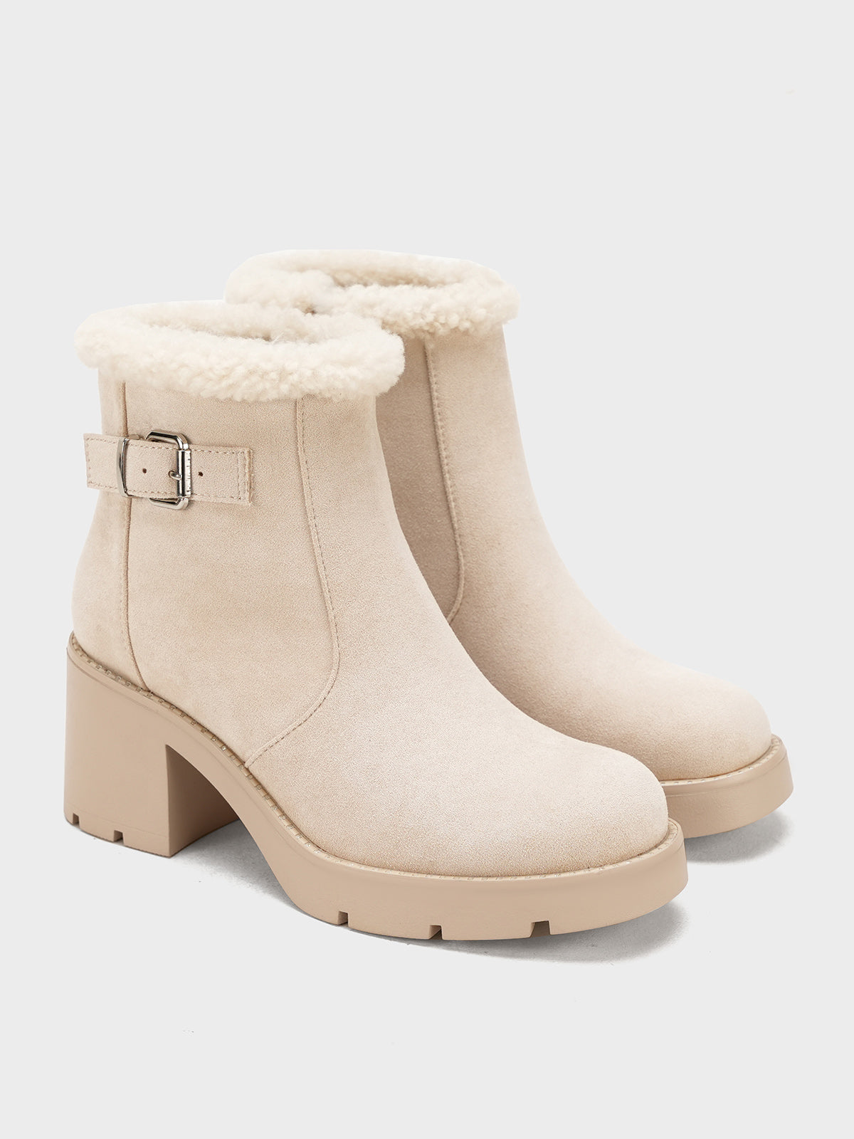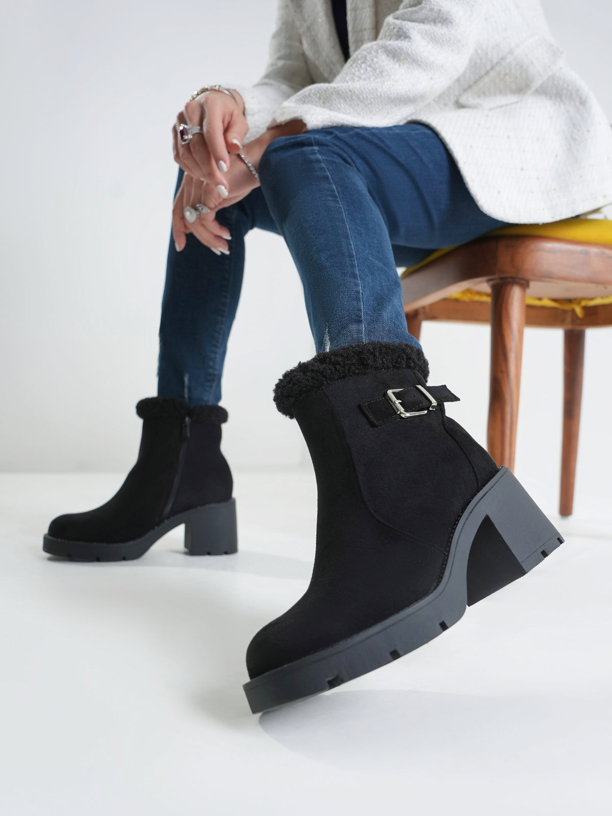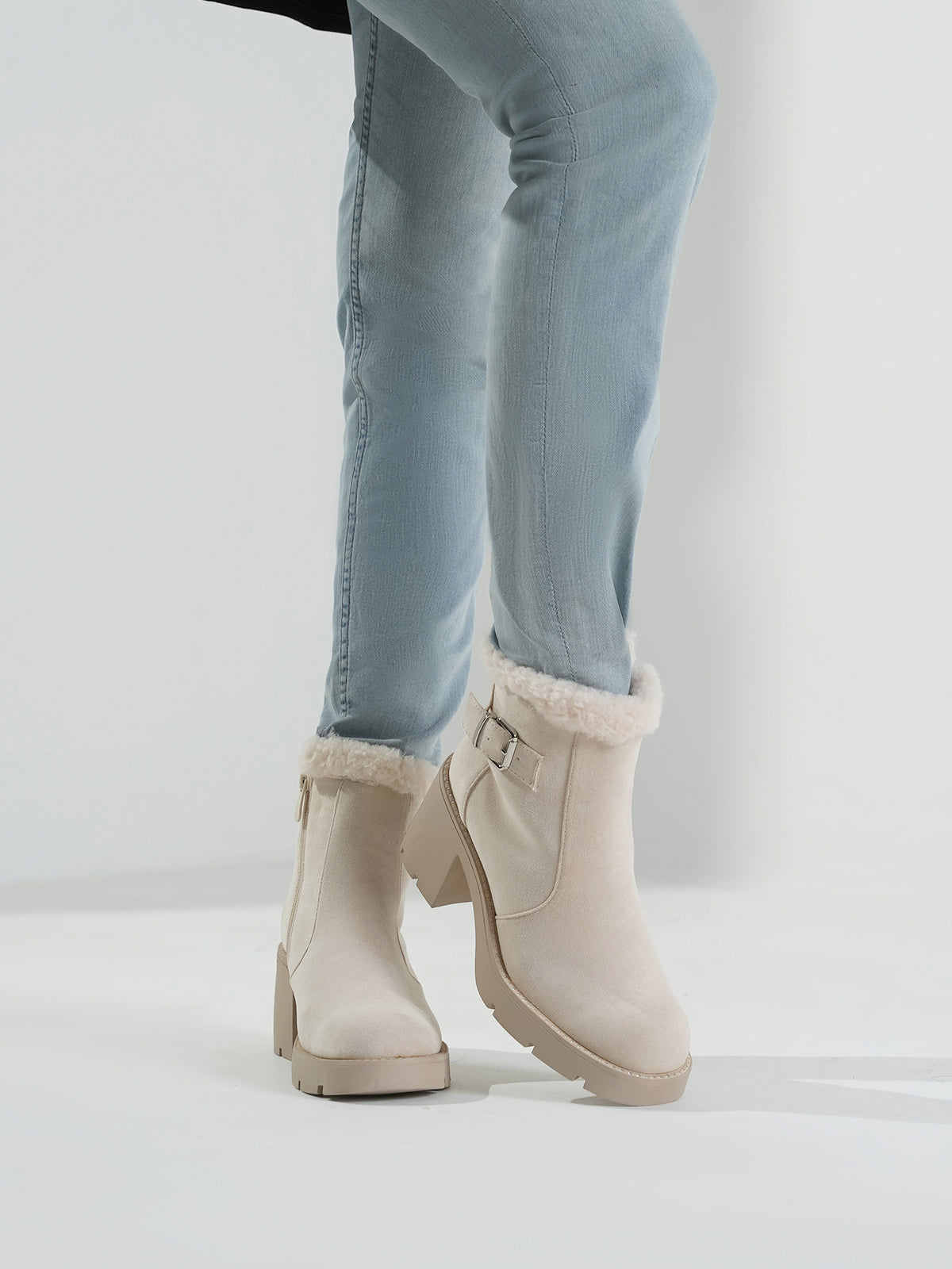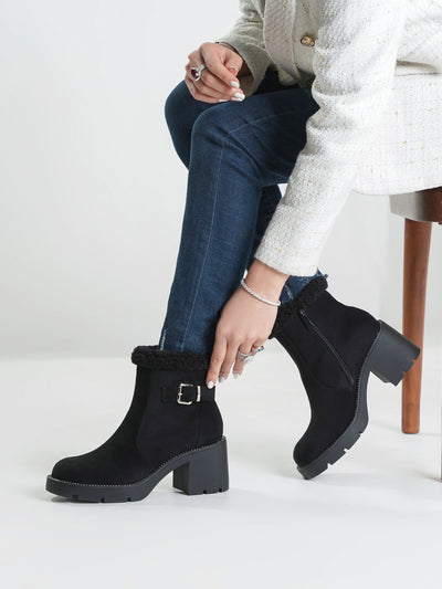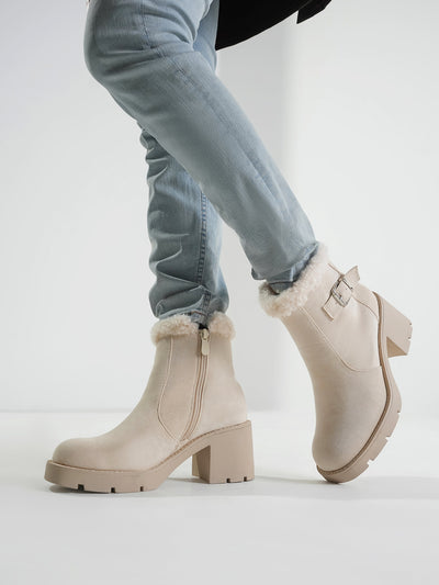 Step into cozy style with these women’s ankle boots featuring soft faux fur around the ankle. Designed for warmth and fashion, these boots offer a snug fit with a stylish touch. The fur trim adds a winter-ready look, while the sturdy sole provides comfort and grip for all-day wear.