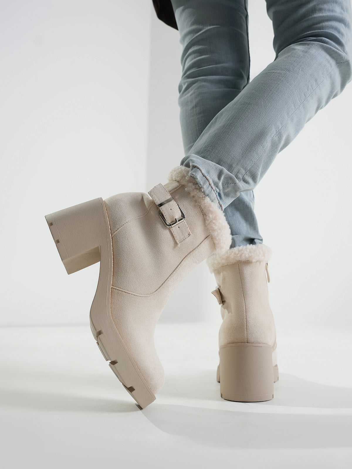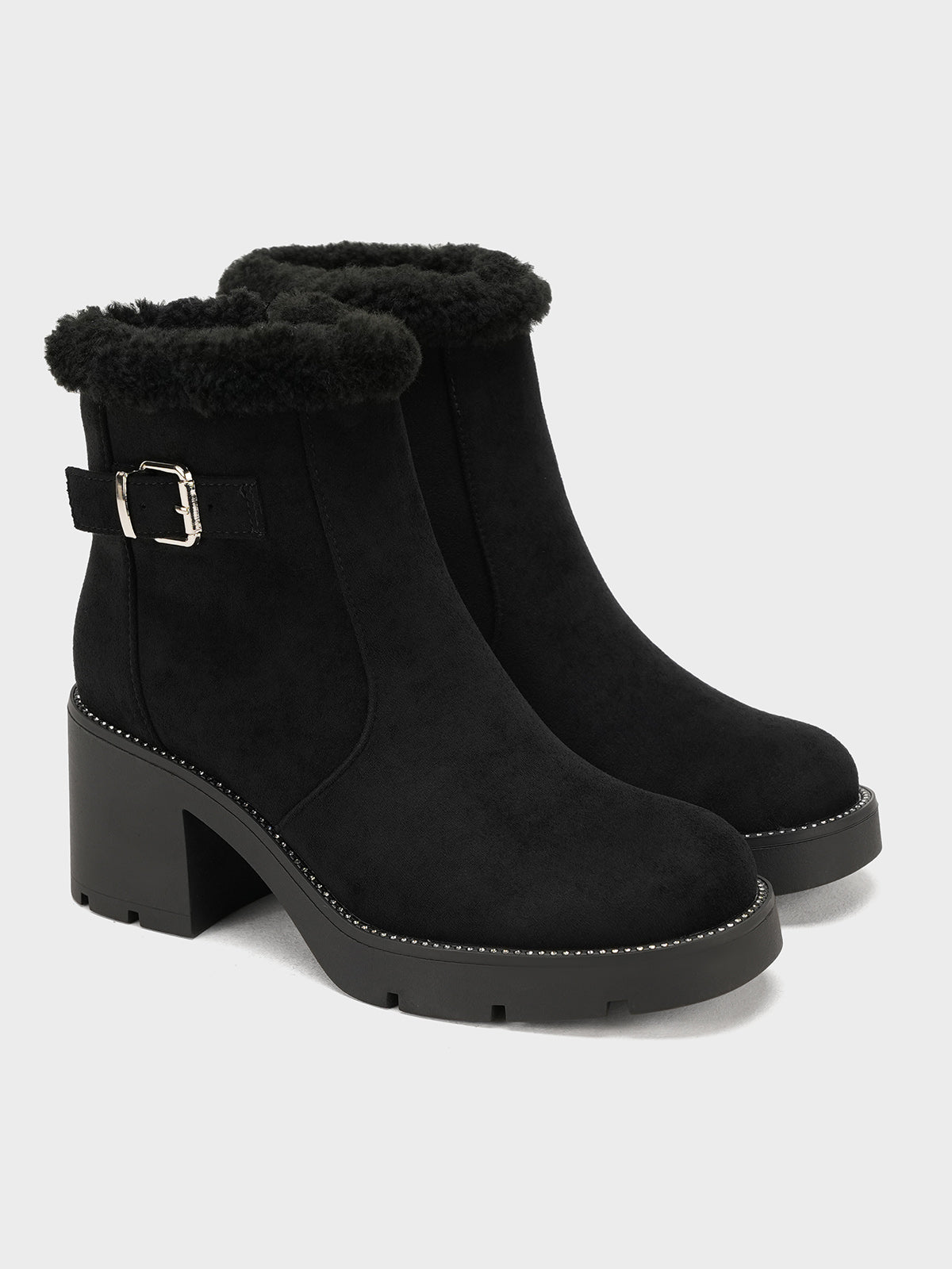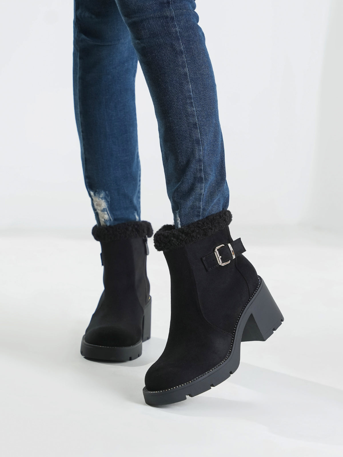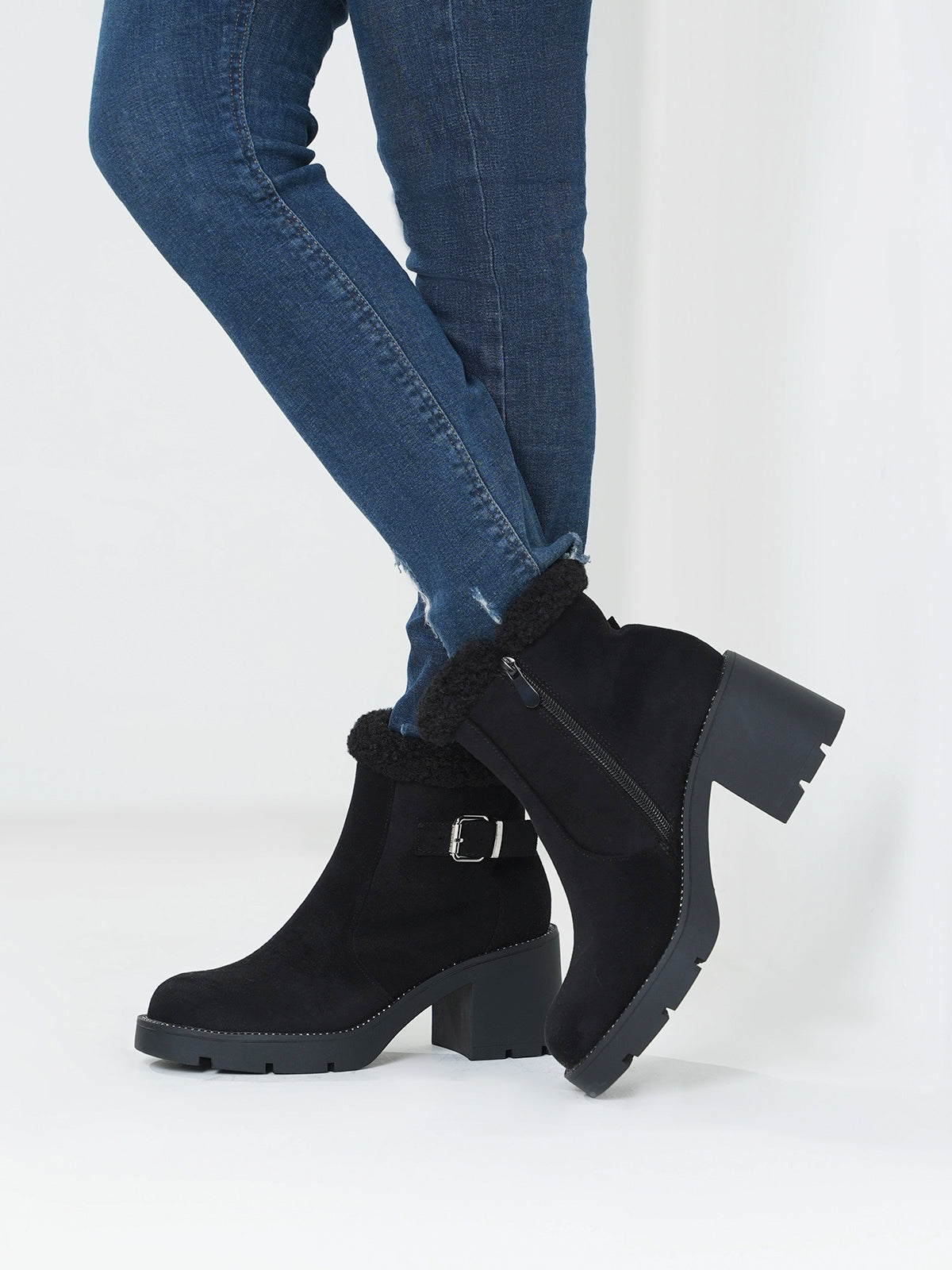 Step into cozy style with these women’s ankle boots featuring soft faux fur around the ankle. Designed for warmth and fashion, these boots offer a snug fit with a stylish touch. The fur trim adds a winter-ready look, while the sturdy sole provides comfort and grip for all-day wear.