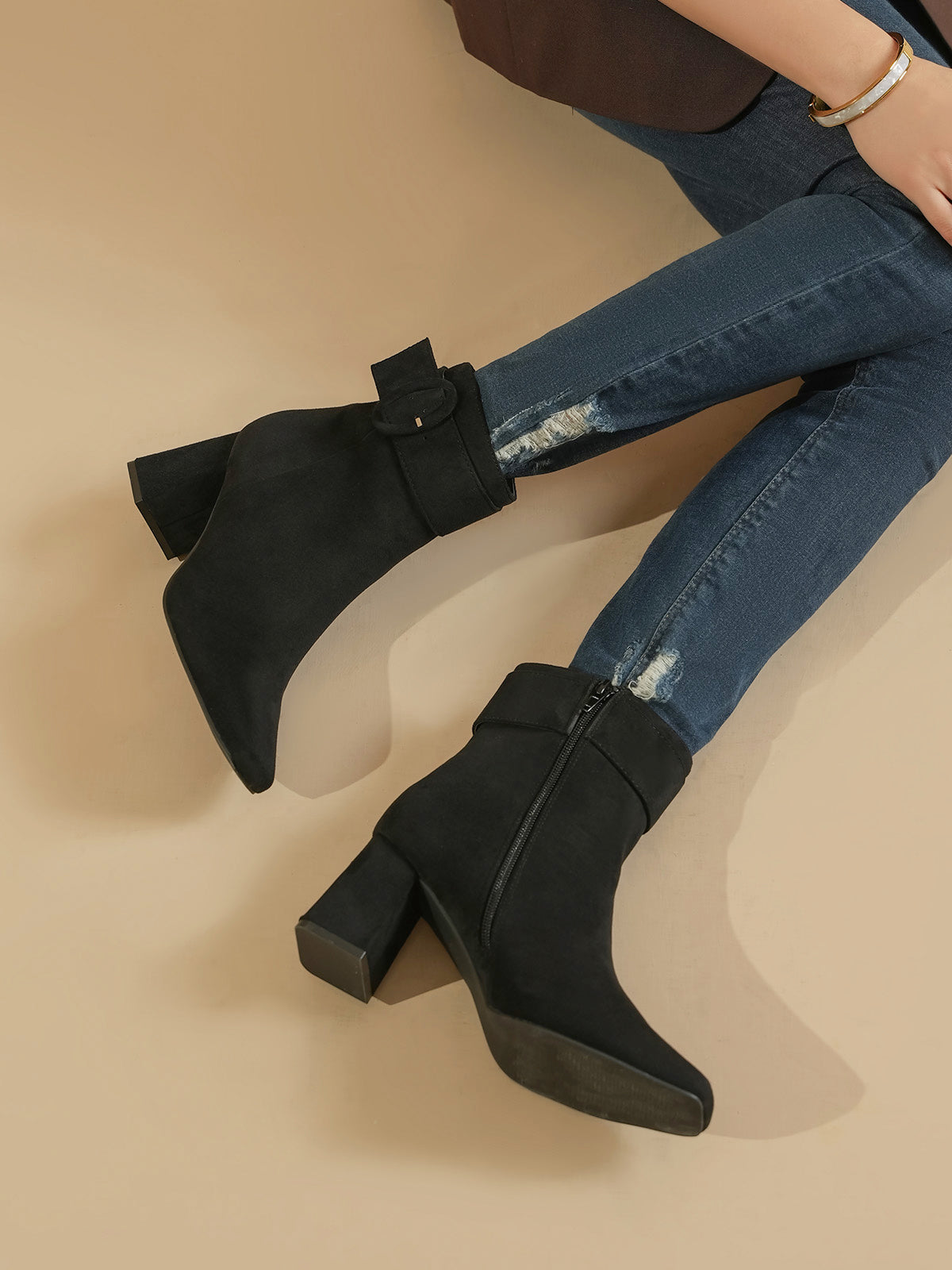 Make a bold statement with these women’s chunky heel boots. Designed with a side zip for easy wear and a sturdy chunky heel for added height and comfort, these boots are perfect for both casual and semi-formal looks.