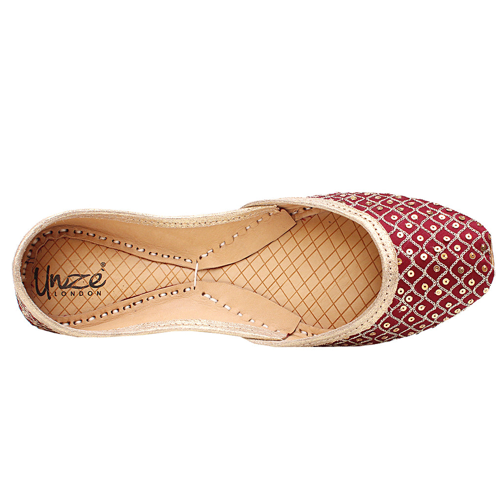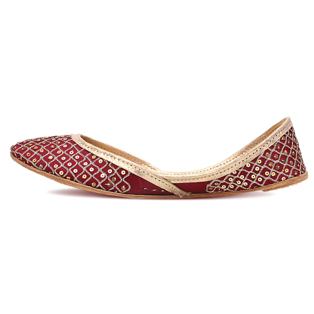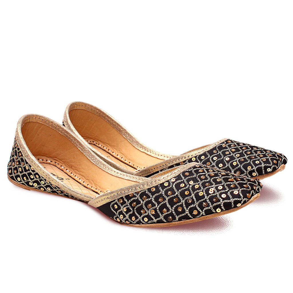 Introducing our exquisite handcrafted dressy flat shoes for weddings, adorned with stunning beads and diamantes. These shoes are the perfect choice for a beach wedding, especially if you plan on wearing a short wedding dress. Our Punjabi Jutti is a true masterpiece in terms of quality and design. Each pair is meticulously handmade using only the finest materials available. The upper of these traditional juttis is adorned with intricate tila work, crafted by the best craftsmen in the industry. Not only are these shoes beautiful, but they are also incredibly comfortable to wear. You can dance the night away without worrying about sore feet. Make a statement on your special day with our dressy flat shoes for weddings. Order yours today and experience the perfect combination of style and comfort.