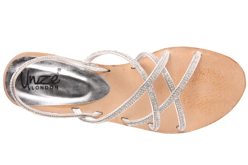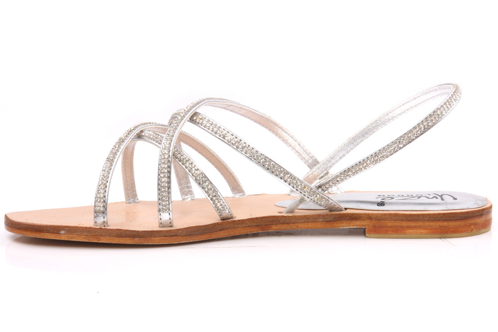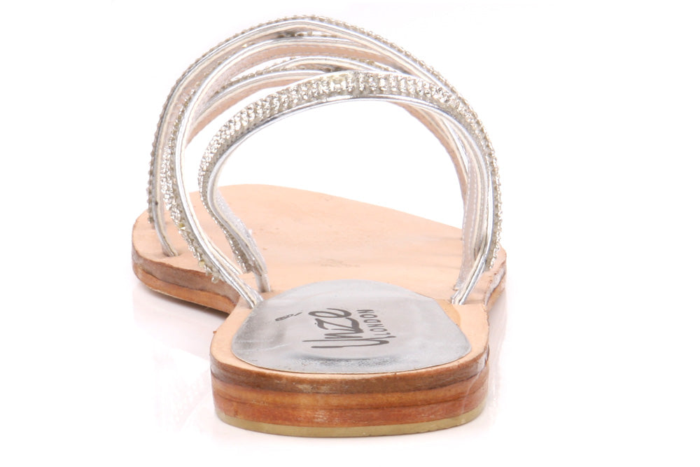 Cage the pretty feet in these shiny diamante detailing strappy open toe, summer shoes, slingback sandals. These flat heel shoes are best for all occasions. Style No: L23725 Colour: Silver
