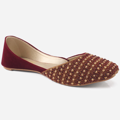 A bit of femininity and firmness, these impudent pumps surely have them both. Simple adorned upper with hand embroidered pattern, Leather sole and upper is well crafted. These chic slip-ons have beautifully designed upper with slightly cut out designed toe. These beautiful handcrafted shoes are true masterpiece with its delicate design and feel. Easy slip-on construction with lightly cushioned man-made footbed for ongoing soothes and underfoot support. Left or right ___ you can wear them both ways.