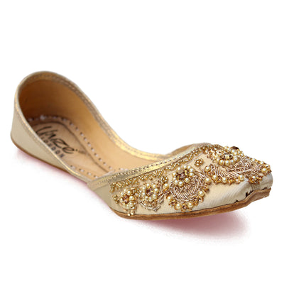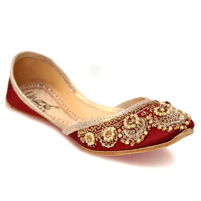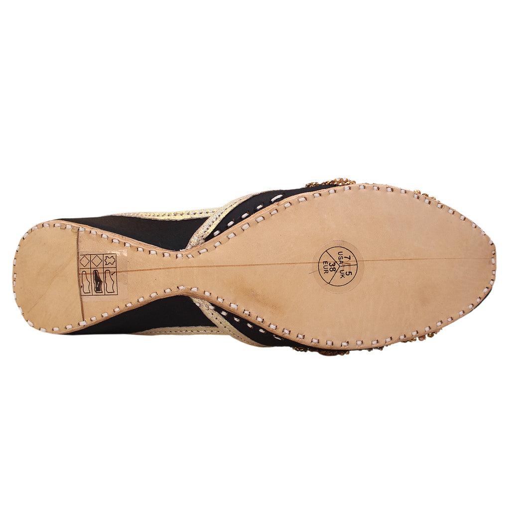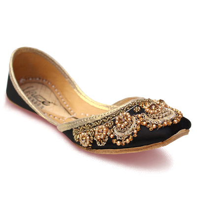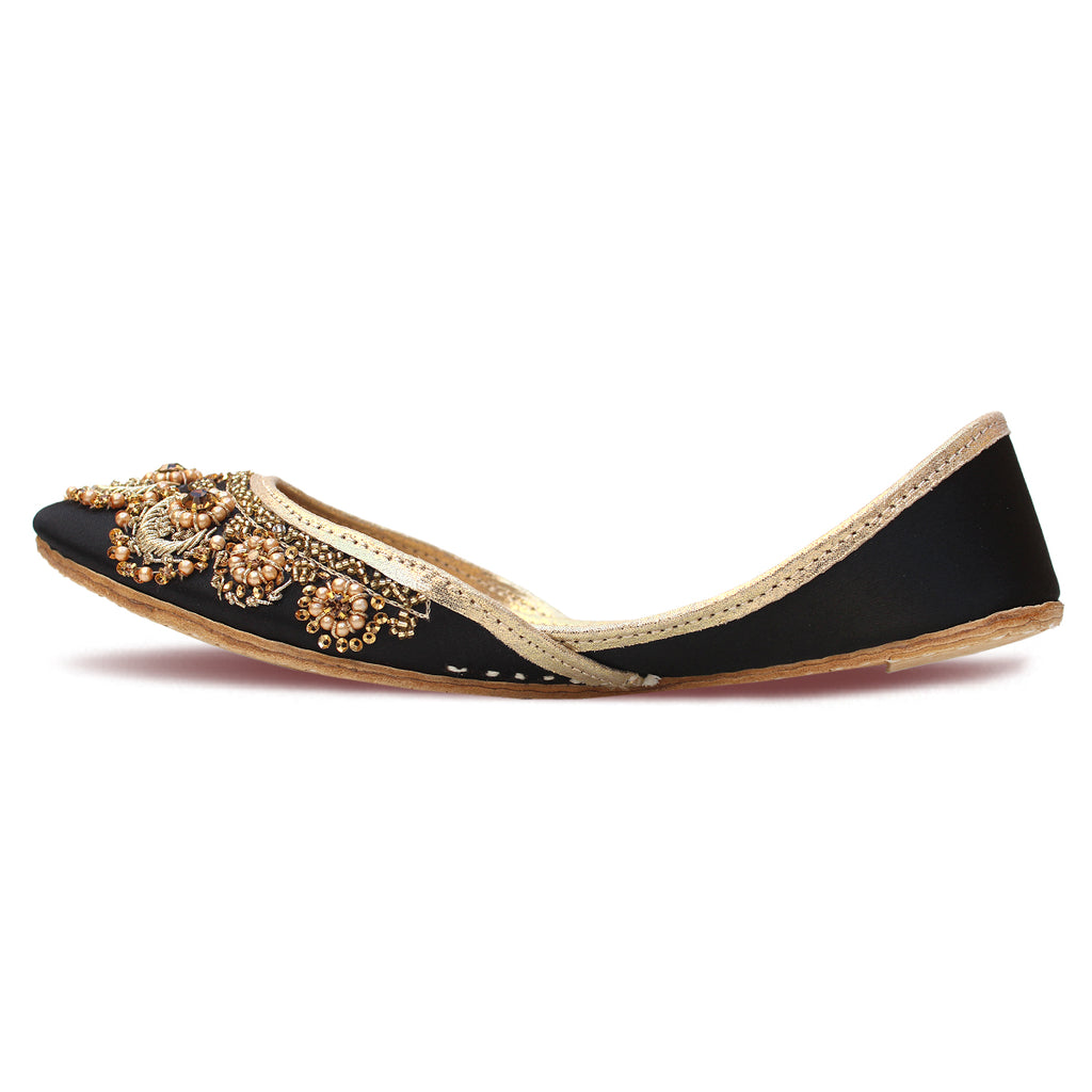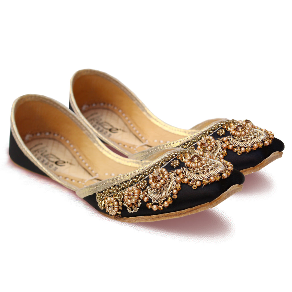 Looking for the perfect complement to your traditional or ethnic attire? Look no further than these exquisite leather Flat pumps. Each pair is handmade and handcrafted with the utmost care, ensuring that every detail is perfect. Adorned with intricate beadwork and sparkling crystals, these shoes are sure to turn heads wherever you go.But these pumps aren't just beautiful – they're also incredibly comfortable. The easy slip-on construction means you can effortlessly slip them on and off, while the soft leather molds to your feet for a perfect fit. And because they can be worn on either foot, they're a practical and stylish addition to any wardrobe.