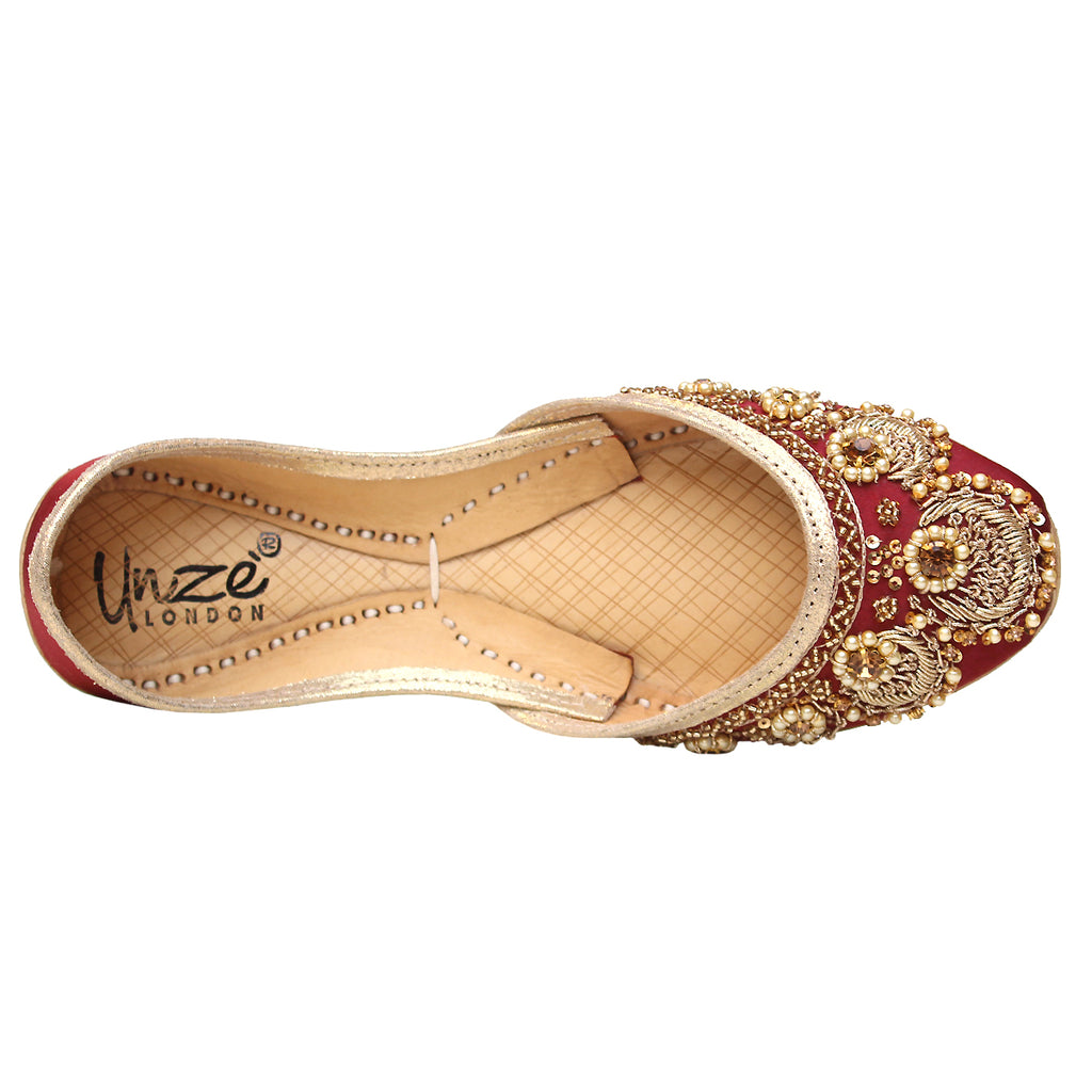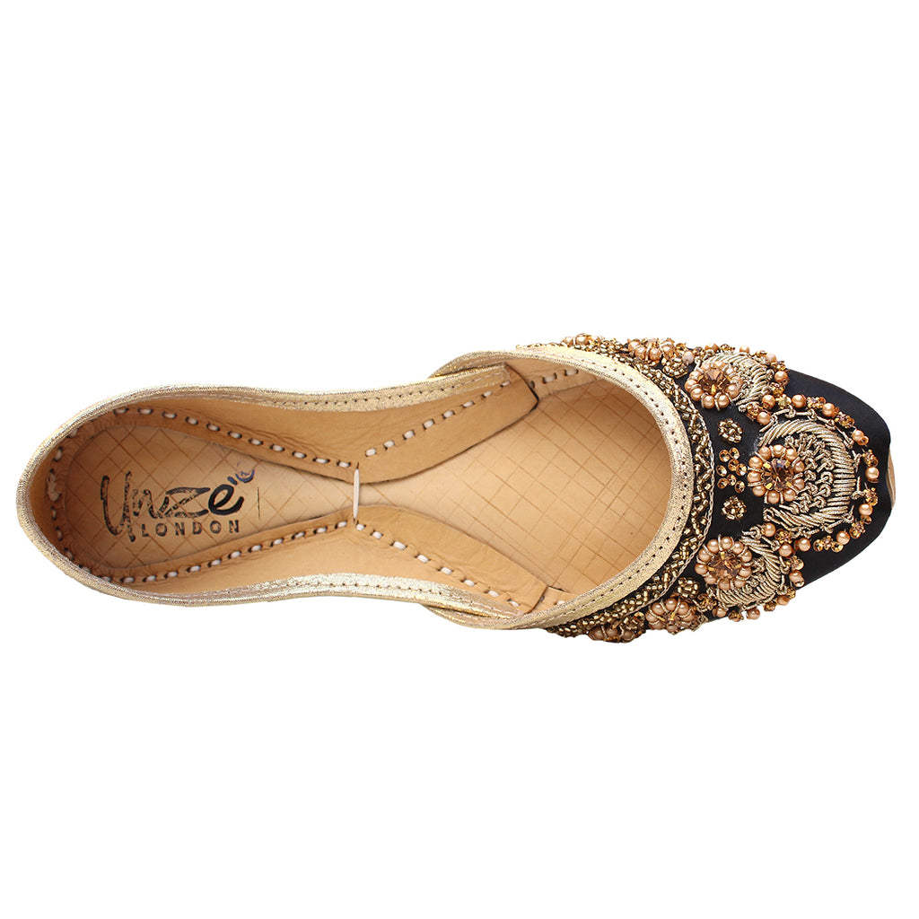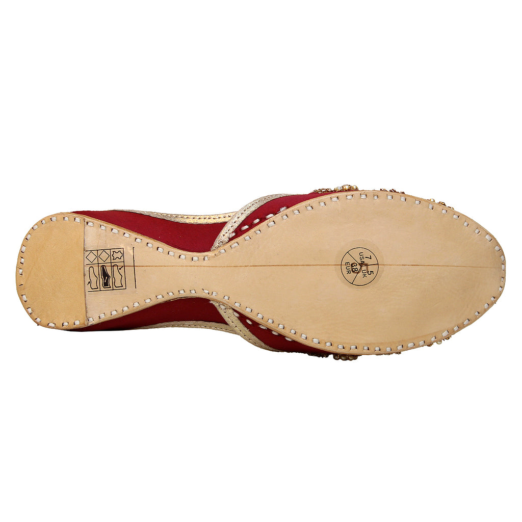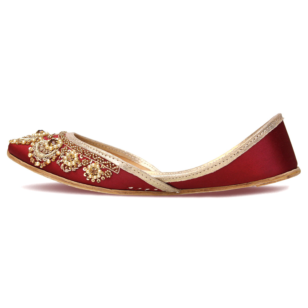 Looking for the perfect complement to your traditional or ethnic attire? Look no further than these exquisite leather Flat pumps. Each pair is handmade and handcrafted with the utmost care, ensuring that every detail is perfect. Adorned with intricate beadwork and sparkling crystals, these shoes are sure to turn heads wherever you go.But these pumps aren't just beautiful – they're also incredibly comfortable. The easy slip-on construction means you can effortlessly slip them on and off, while the soft leather molds to your feet for a perfect fit. And because they can be worn on either foot, they're a practical and stylish addition to any wardrobe.
