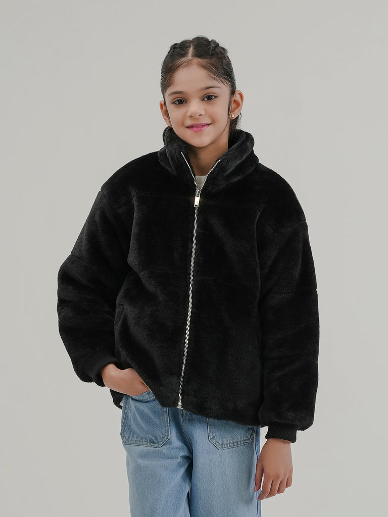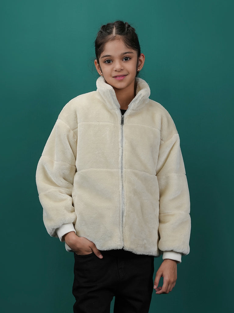 This girls' Bubble Puffer Jacket with Sherpa/Fleece lining is perfect for keeping warm on cold days. Made from 100% polyester, it has a soft and cozy inside and a regular fit for easy movement.