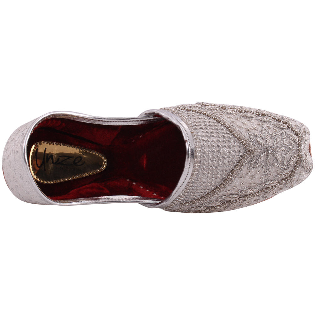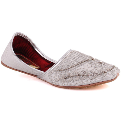 Turn up your style on your special occasion with these traditional embroidered Indian Khussa shoes. Easy slipon design with embellished upper is handmade and well crafted. Leather upper and sole for all day comfort and style. Keep these on all day long on weddings, parties or any special day.