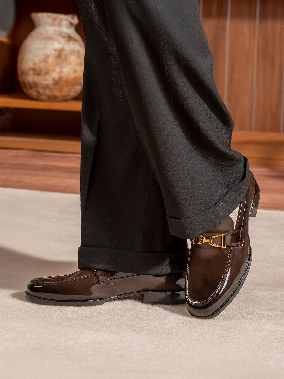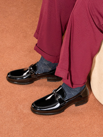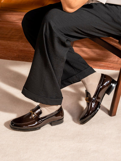 Make a statement with these men’s leather slip-on formal shoes featuring a stylish front buckle. Crafted from high-quality leather, they combine elegance with convenience, offering an easy slip-on design without compromising on sophistication.