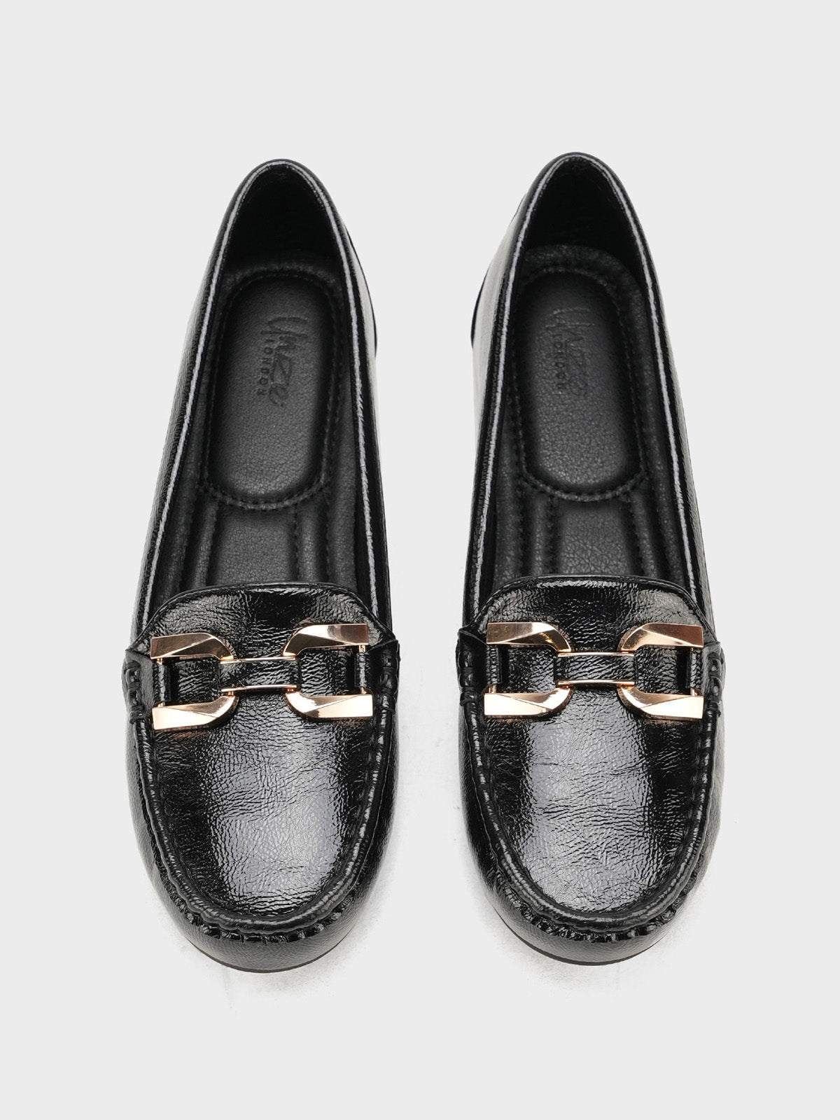 These moccasins feature a medium heel for just the right lift and a classy buckle detail on top. Designed for everyday comfort with a modern touch, they are perfect for work, casual outings, or stylish daily wear. Easy to slip on and always in style.