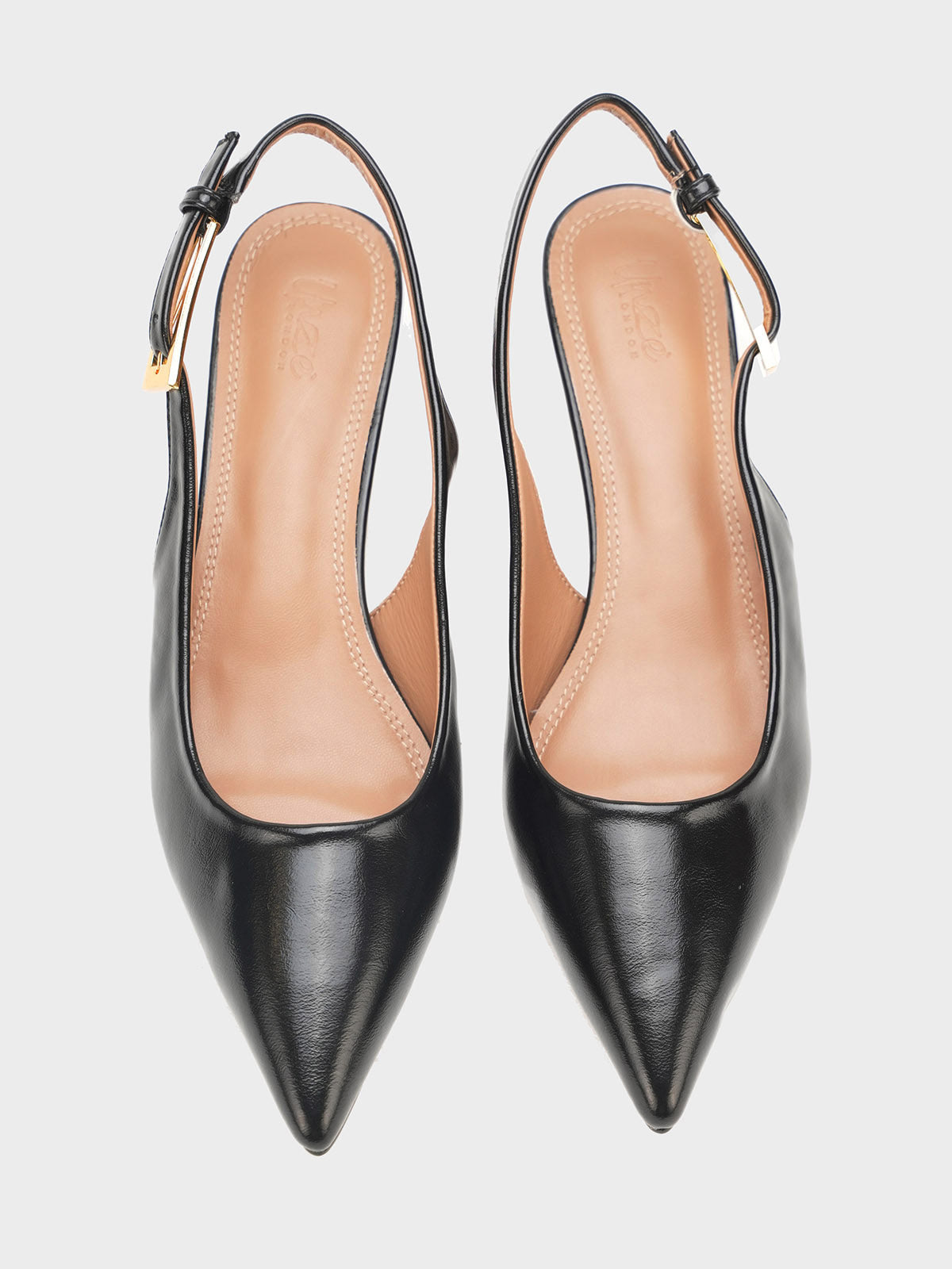 Add refined elegance to your wardrobe with these Women’s Kitten Heel Buckle Sandals, designed in a sleek pointed style. The delicate kitten heel offers just the right amount of height for graceful comfort, while the stylish buckle detail enhances the overall chic appeal.