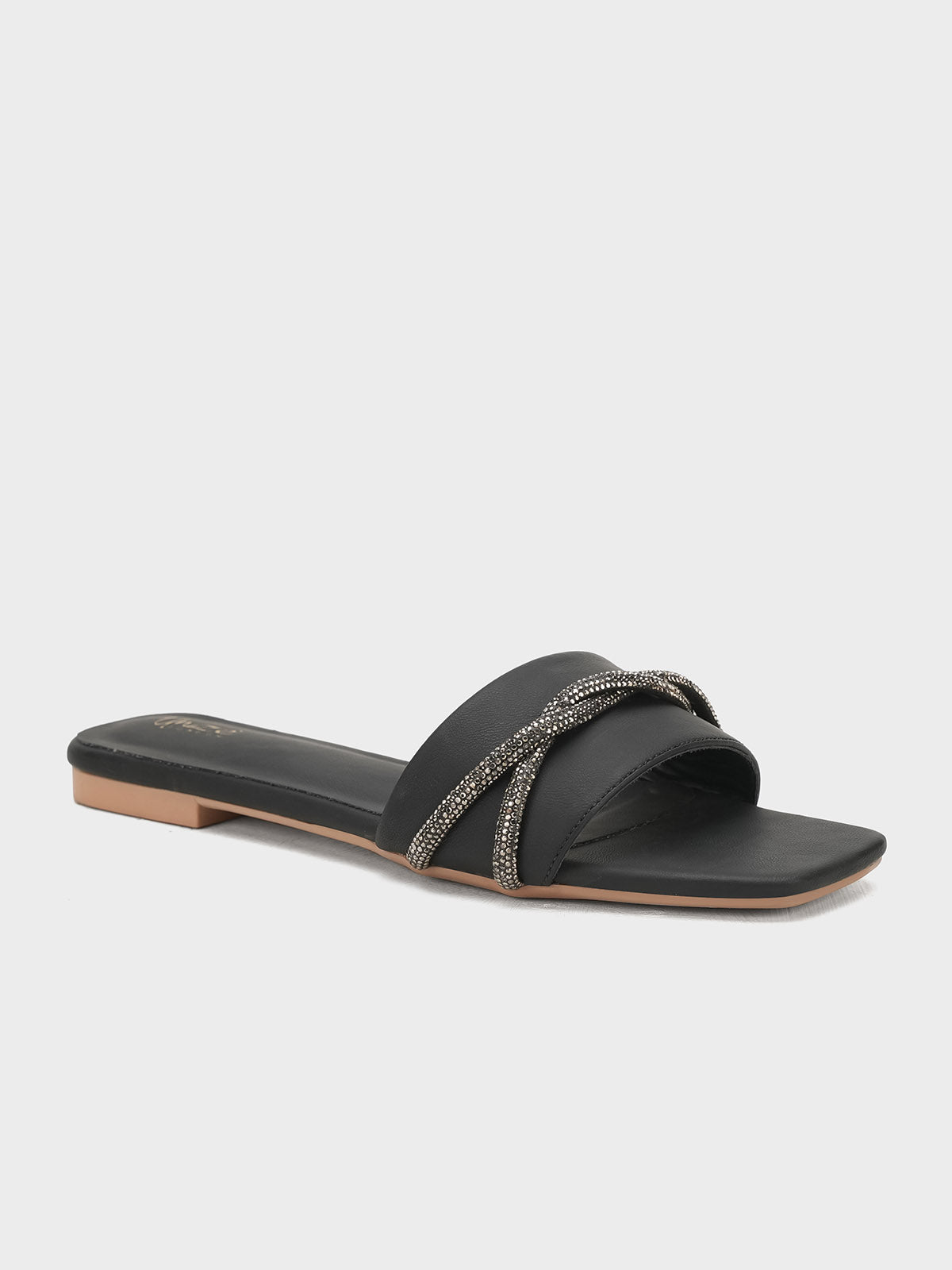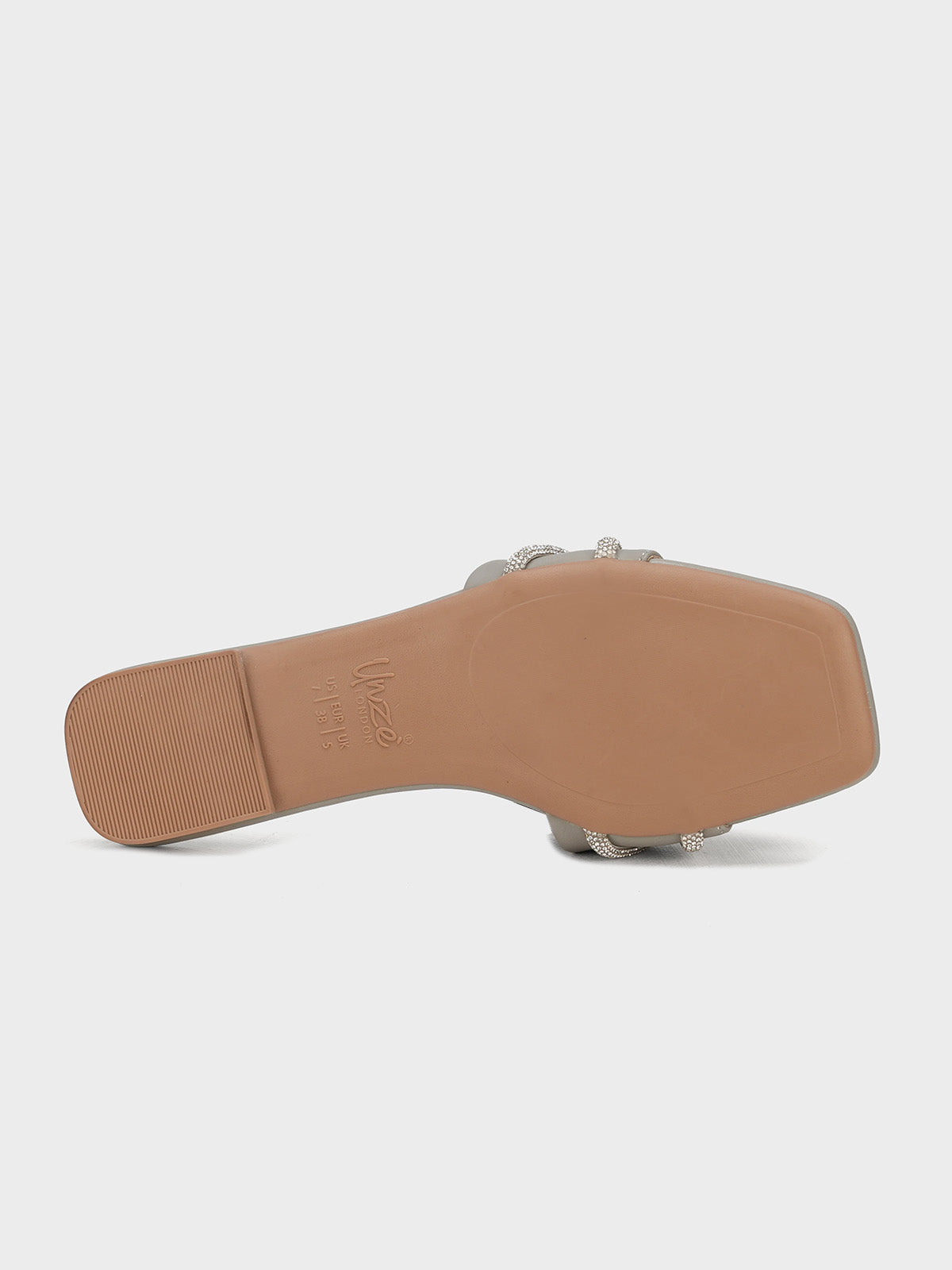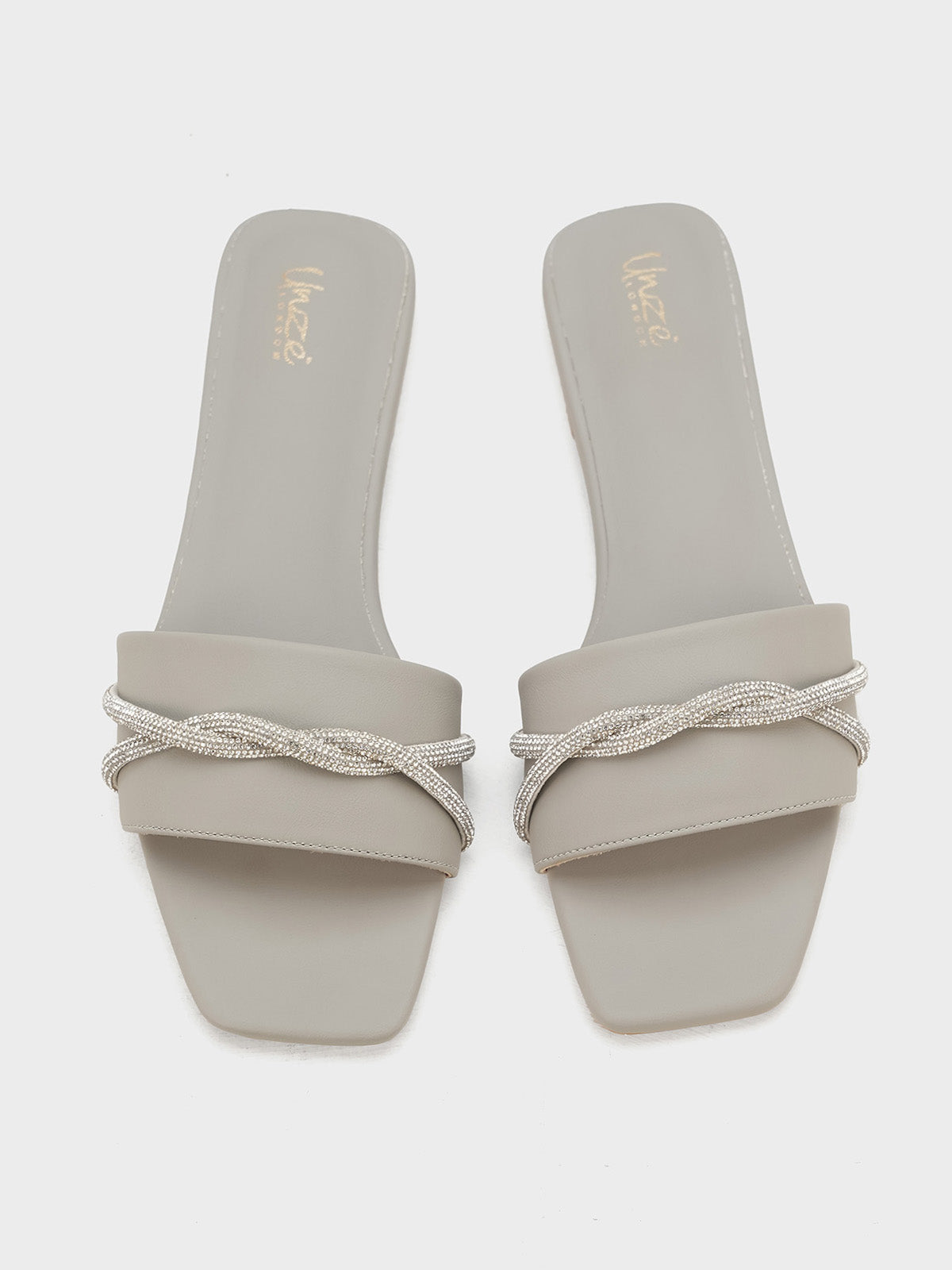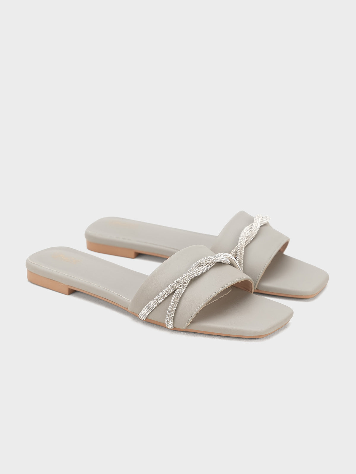 Add a touch of elegance to your look with these women’s fancy slippers. Designed with a sleek grey base and adorned with sparkling straps, they offer both style and comfort. The soft cushioned footbed ensures easy wear.