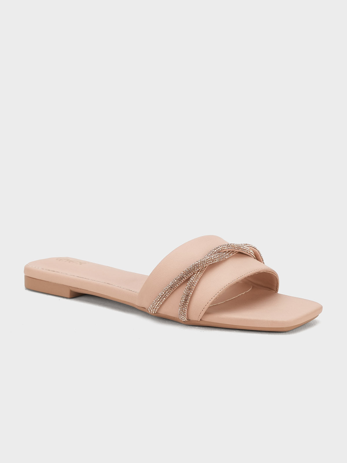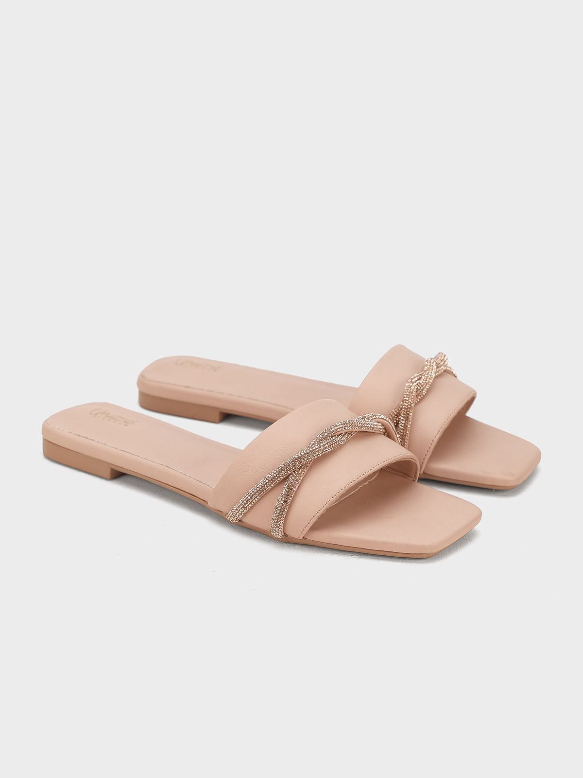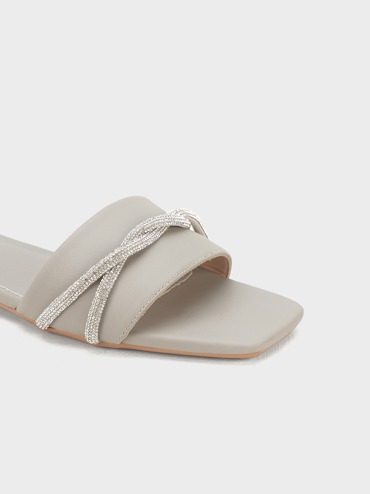 Add a touch of elegance to your look with these women’s fancy slippers. Designed with a sleek grey base and adorned with sparkling straps, they offer both style and comfort. The soft cushioned footbed ensures easy wear.