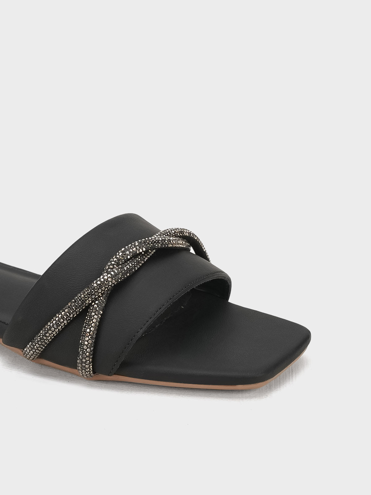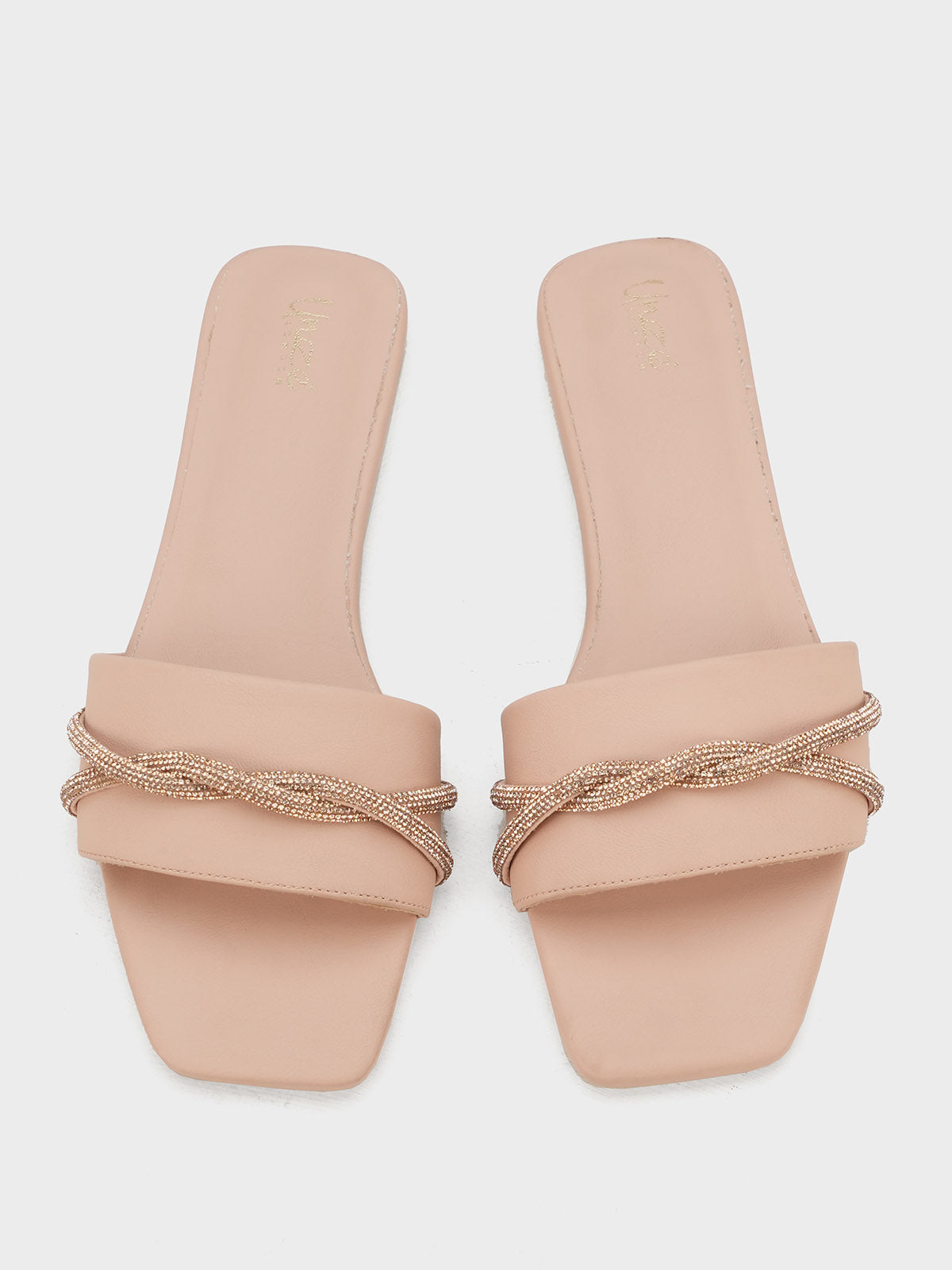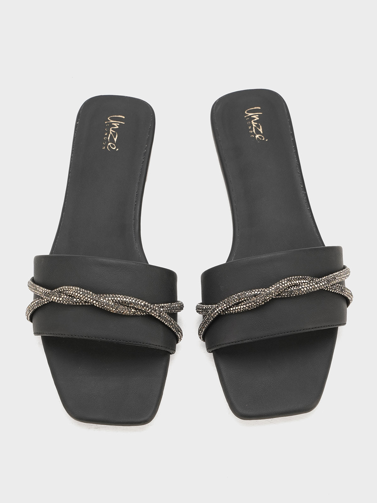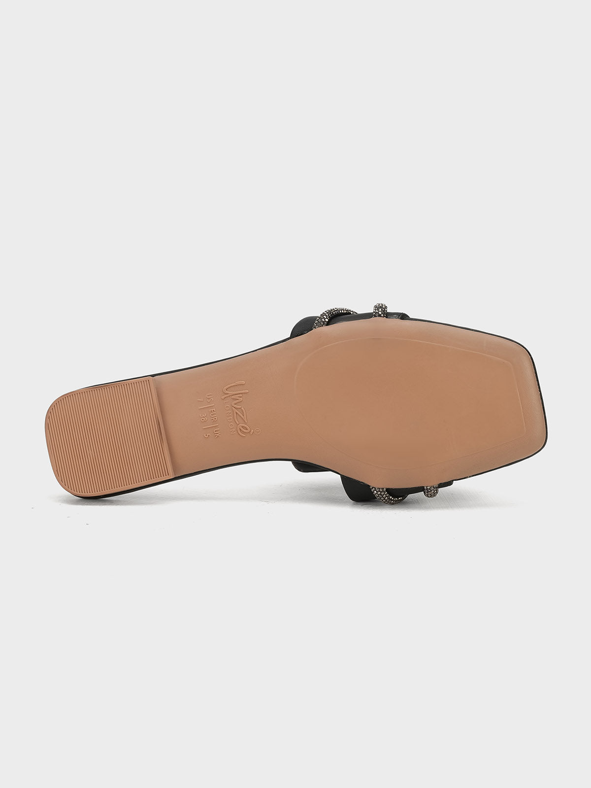 Add a touch of elegance to your look with these women’s fancy slippers. Designed with a sleek grey base and adorned with sparkling straps, they offer both style and comfort. The soft cushioned footbed ensures easy wear.
