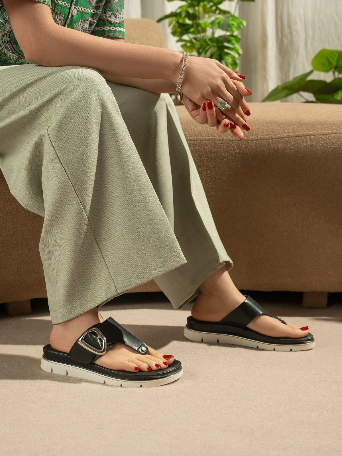 Relax in style with these women’s comfort slippers. Designed for all-day wear, they feature a soft, cushioned sole that keeps your feet cozy while offering a chic, stylish look. Perfect for home or casual wear, these slippers combine comfort and fashion effortlessly.