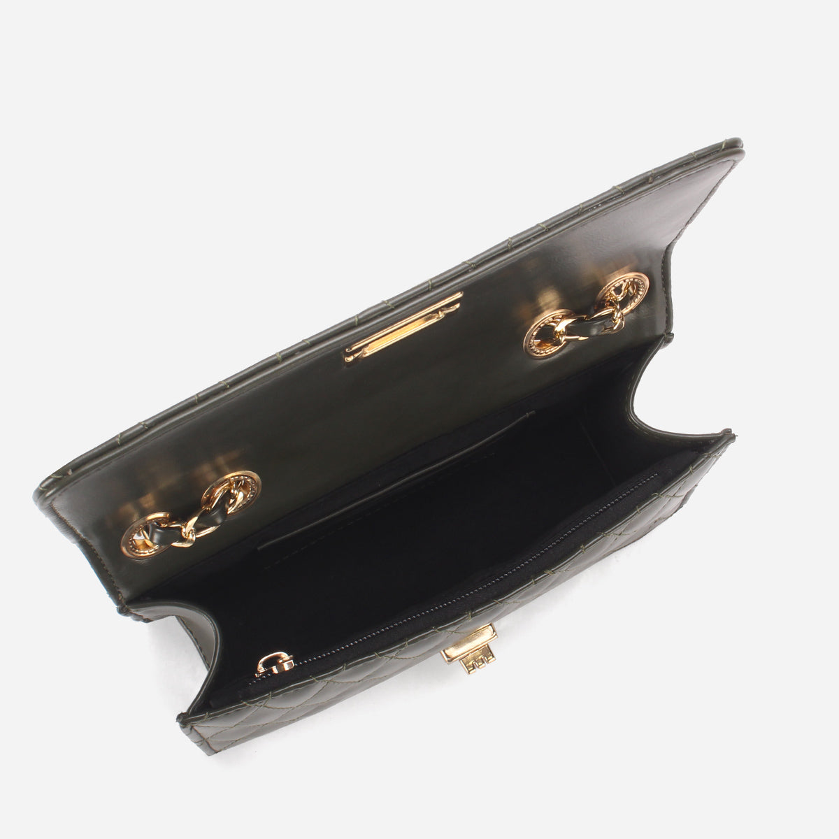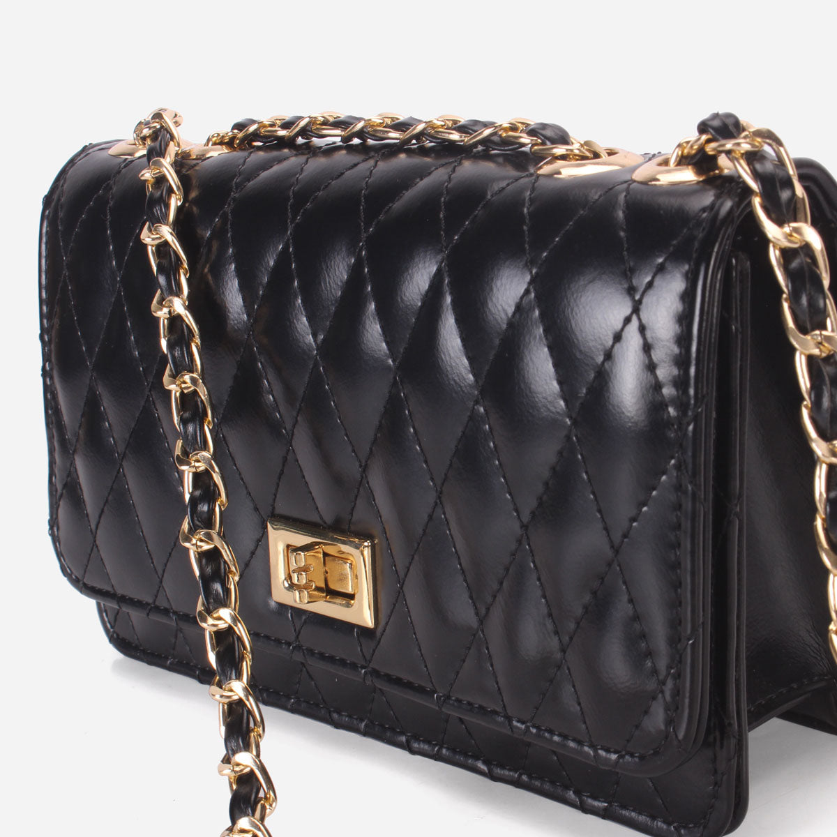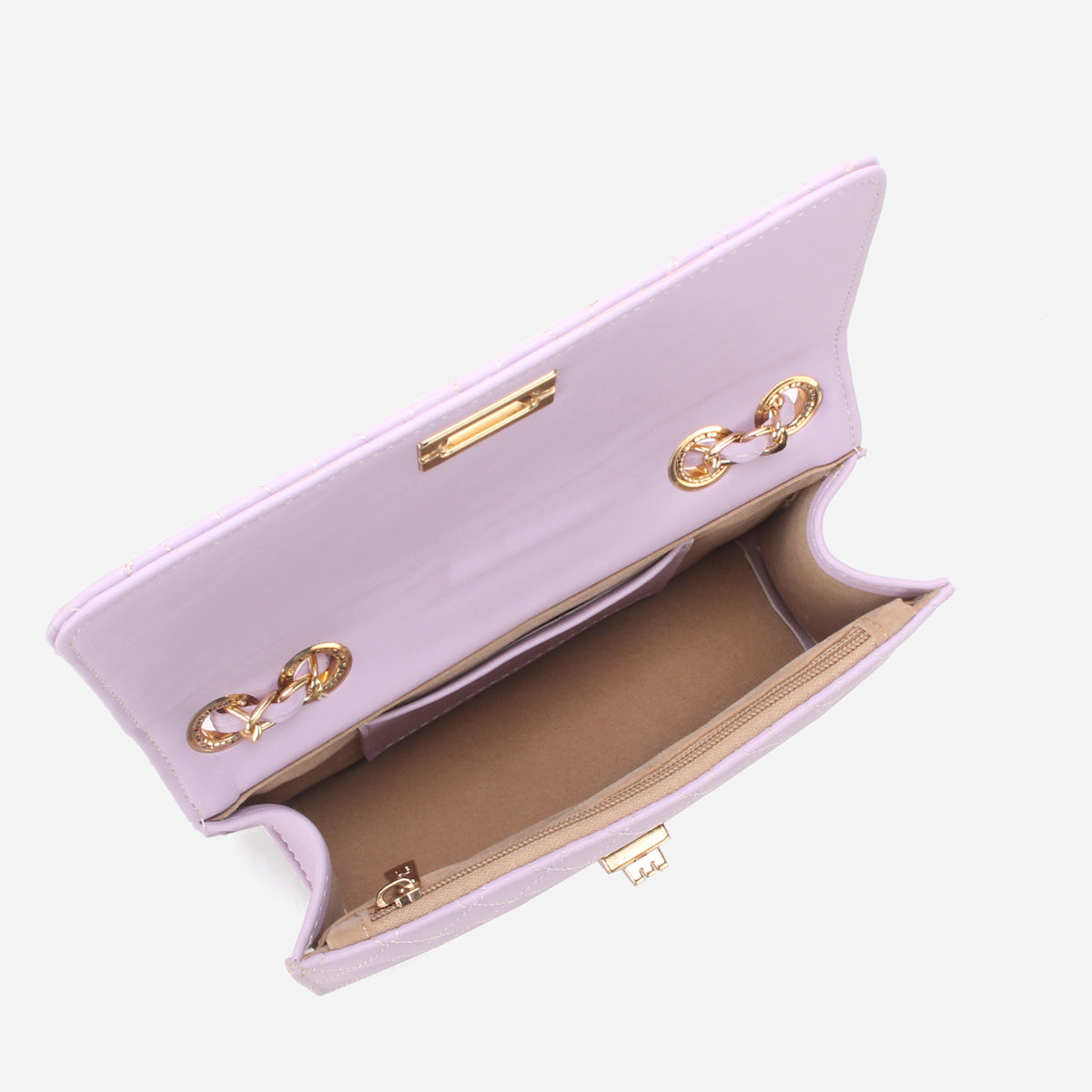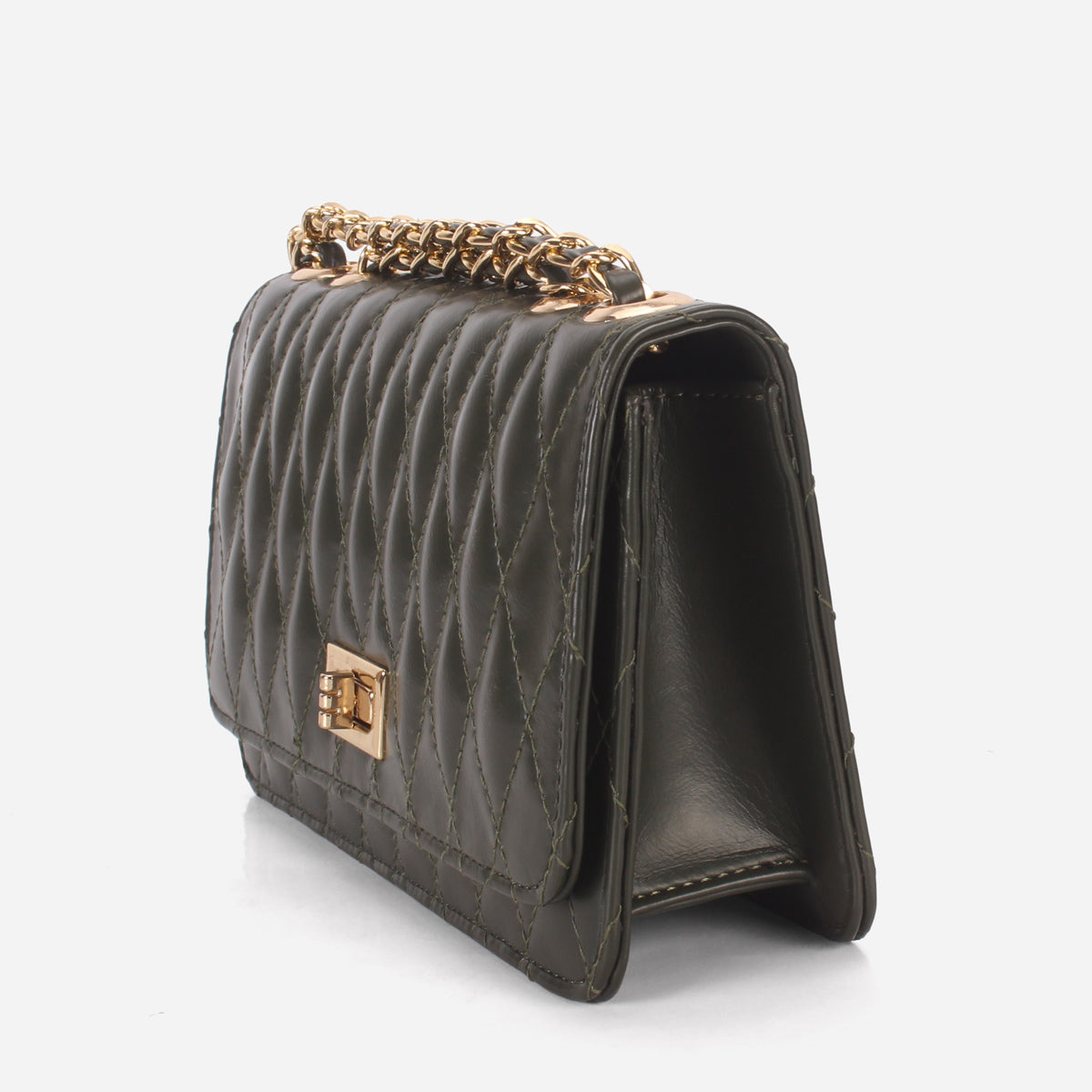 Update your everyday wardrobe with this super stylish shoulder bag. Crossover strappy designed exterior gives ultimate classic look to it.For a fashion forwards looks grab this stylish shoulder bag. Contrasted detailed panels that give ultimate chic looks. Metallic chained strap add some more glam to it.