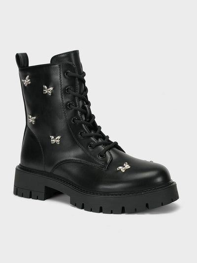 Stay stylish and comfortable in these Women's Smooth Lace Up Boots.The premium synthetic upper and fabric laces provide a secure fit, while tiny metallic bow detailing add unique touch.