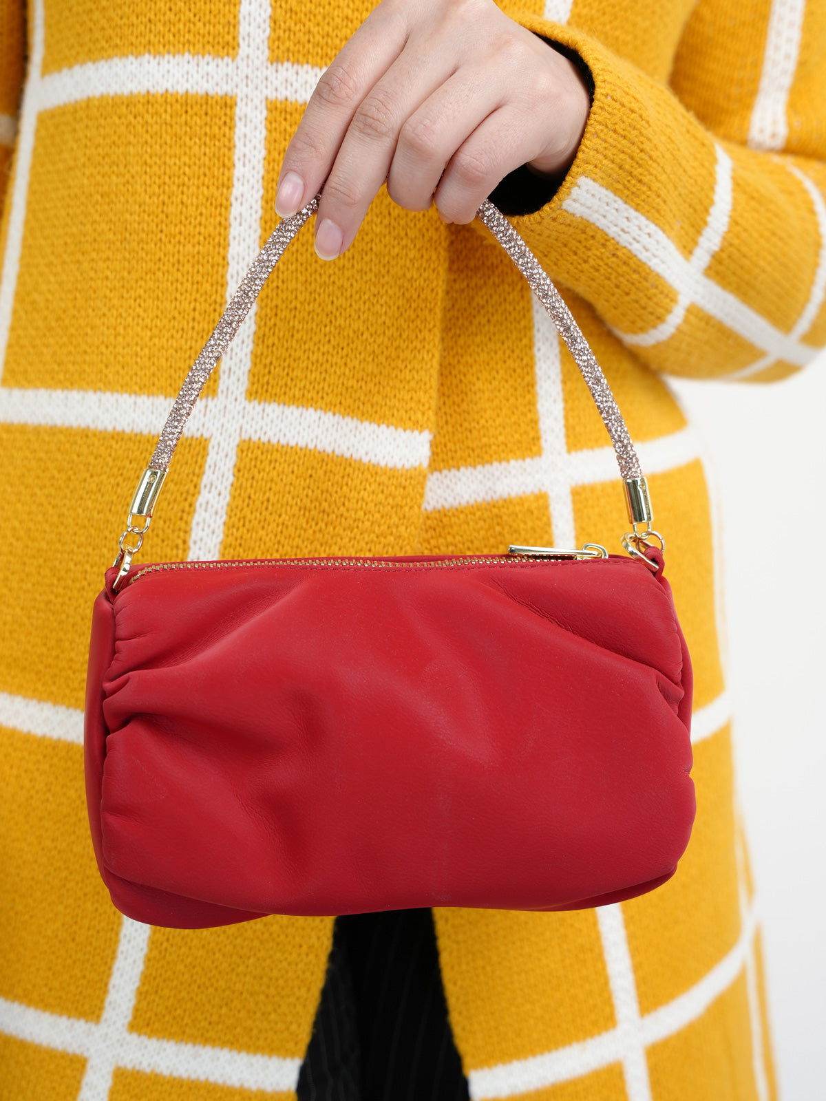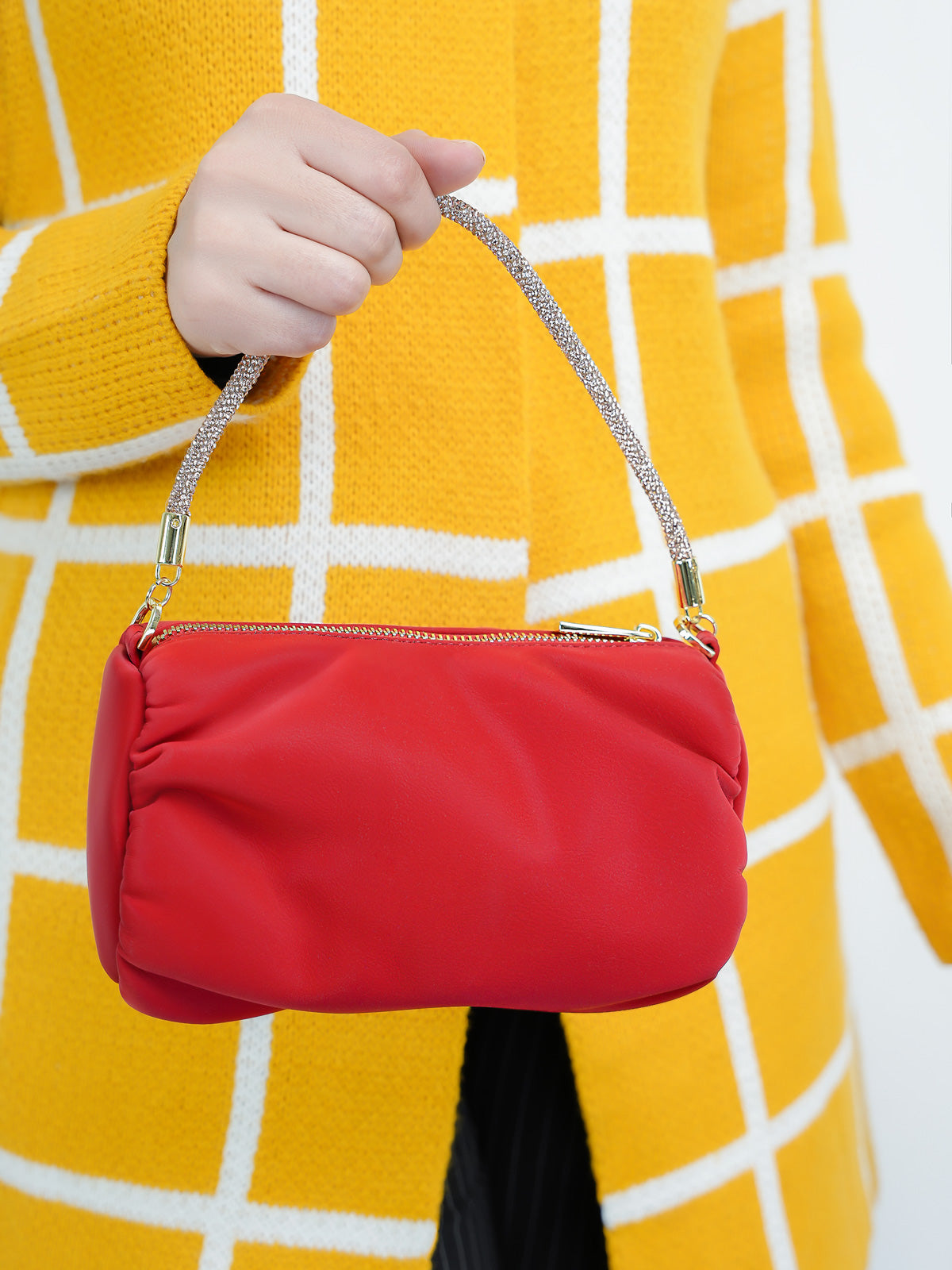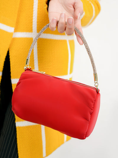 Add a touch of sophistication with this quilted shoulder bag adorned with gold metallic chain accents and gleaming shoulder chained straps. Ideal for both casual outings and evening events.