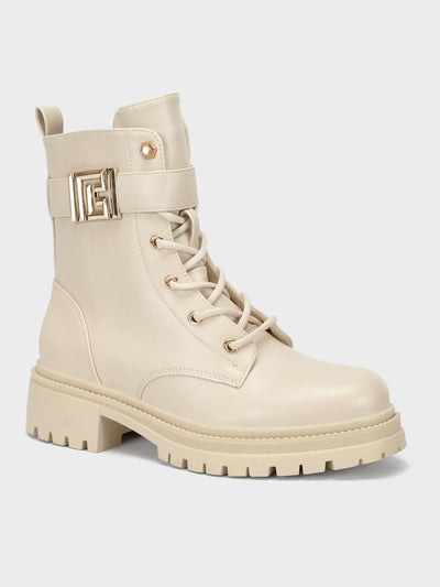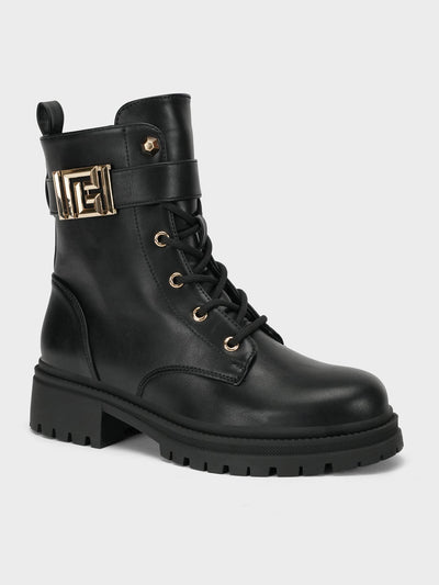 Perfect for any occasion, these Women's Smooth Lace Up Boots feature a luxurious synthetic upper and robust metal eyelets. The classic lace-up system ensures a snug fit while keeping you on-trend. While buckled side closure adds some unique touch.